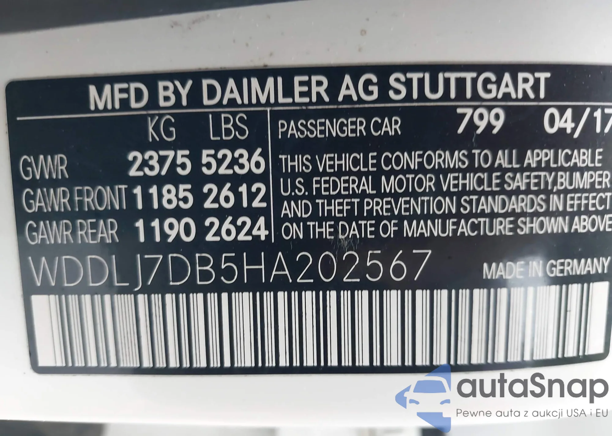 LOT: 41439253 VIN: WDDLJ7DB5HA202567