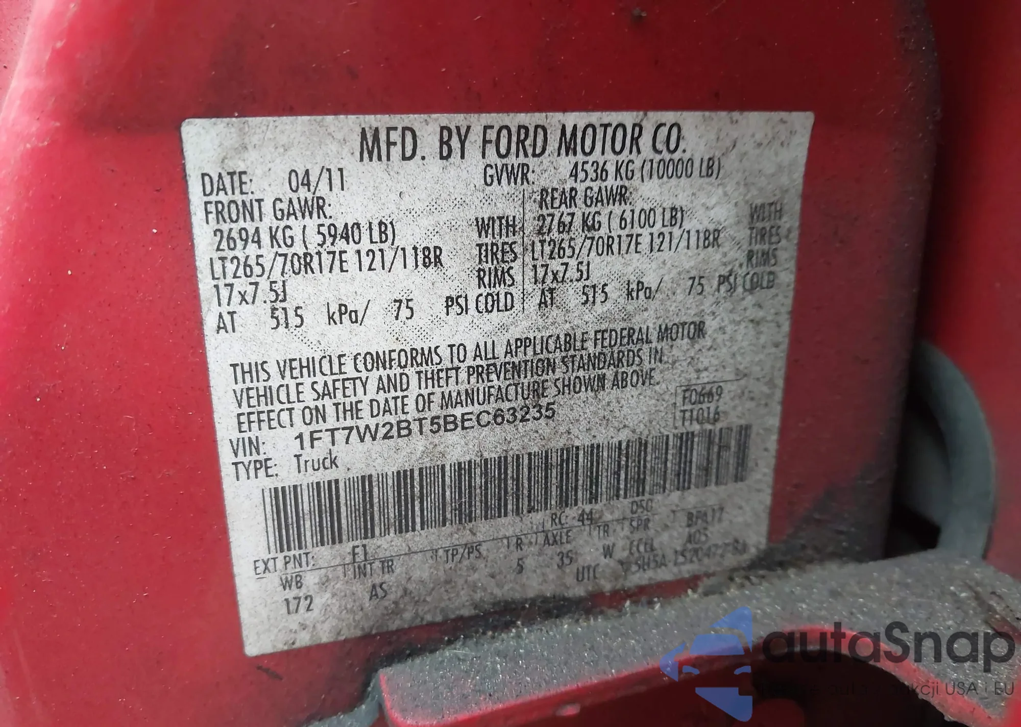 • Lot number 41411727