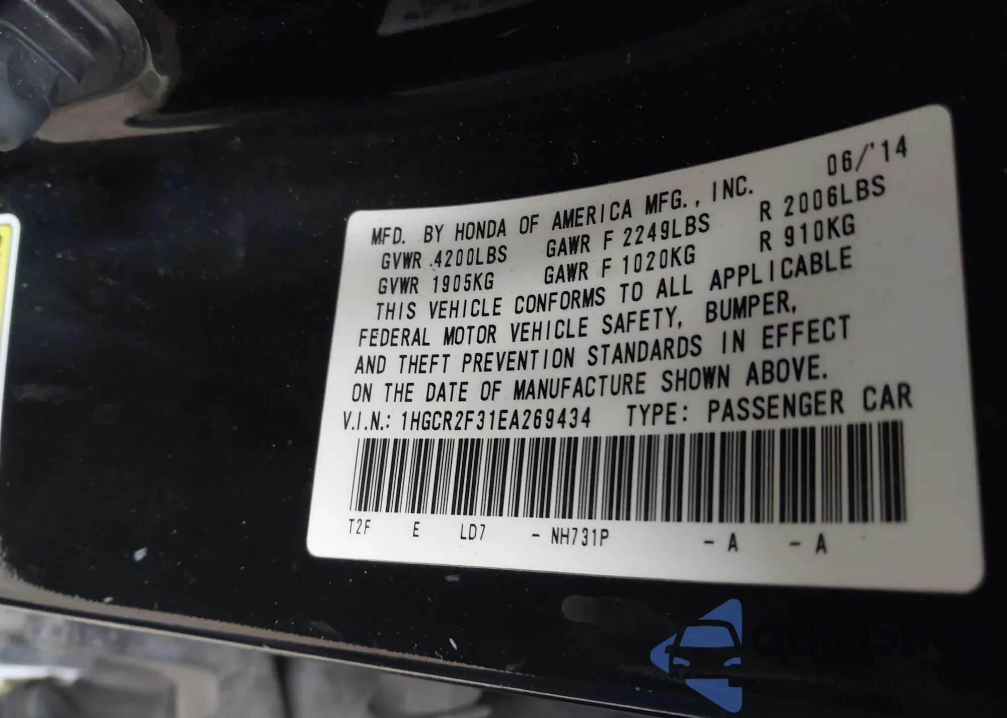• VIN 1HGCR2F31EA269434