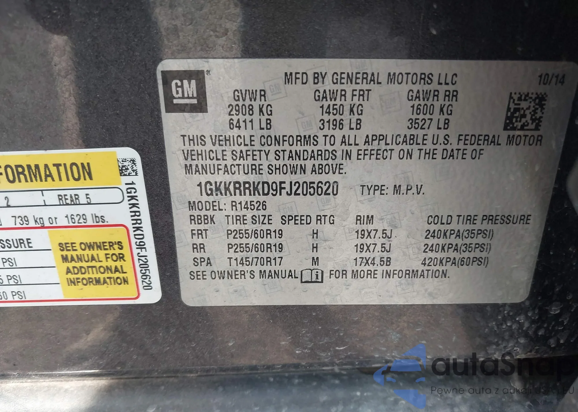 • VIN 1GKKRRKD9FJ205620