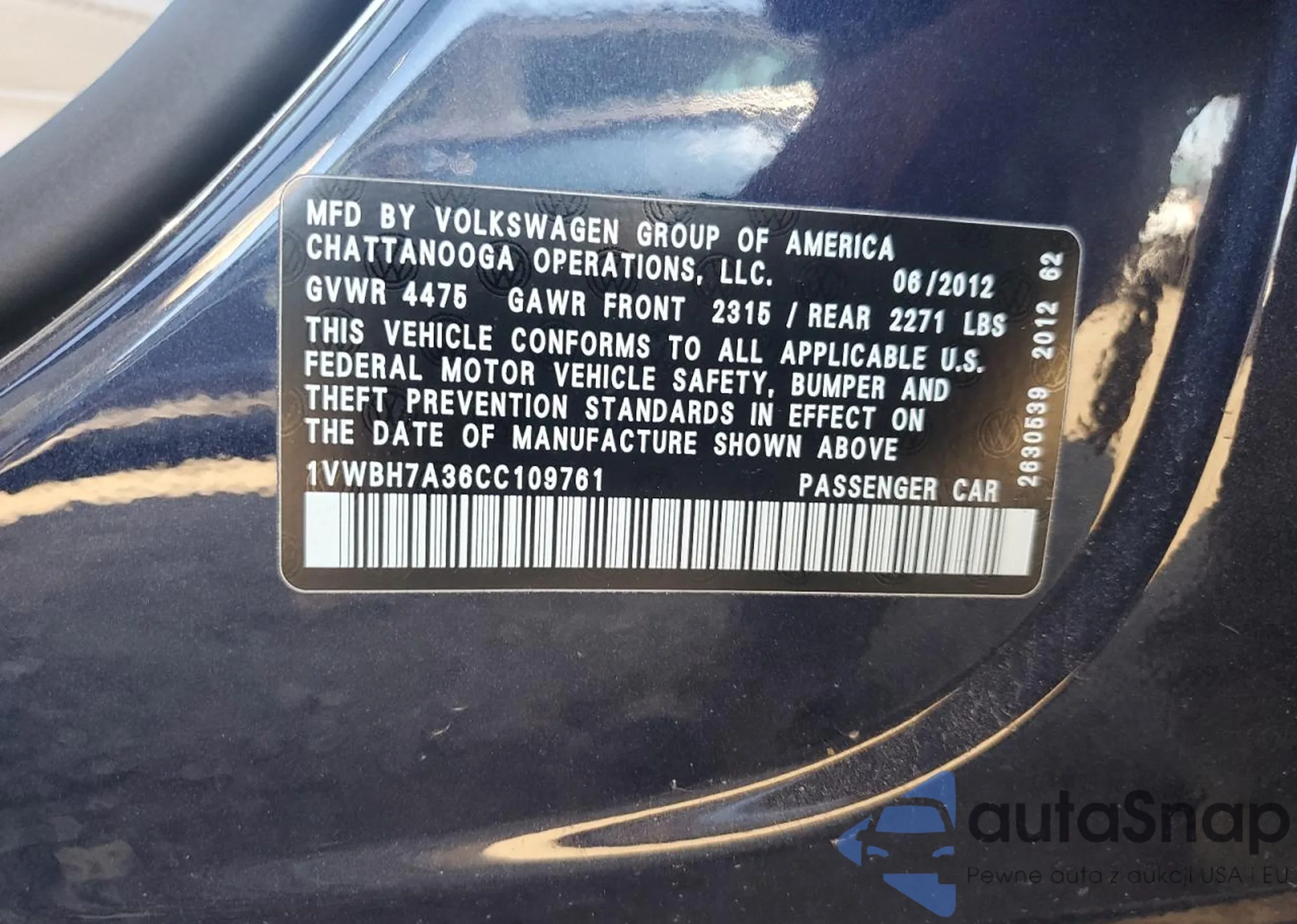 • VIN 1VWBH7A36CC109761