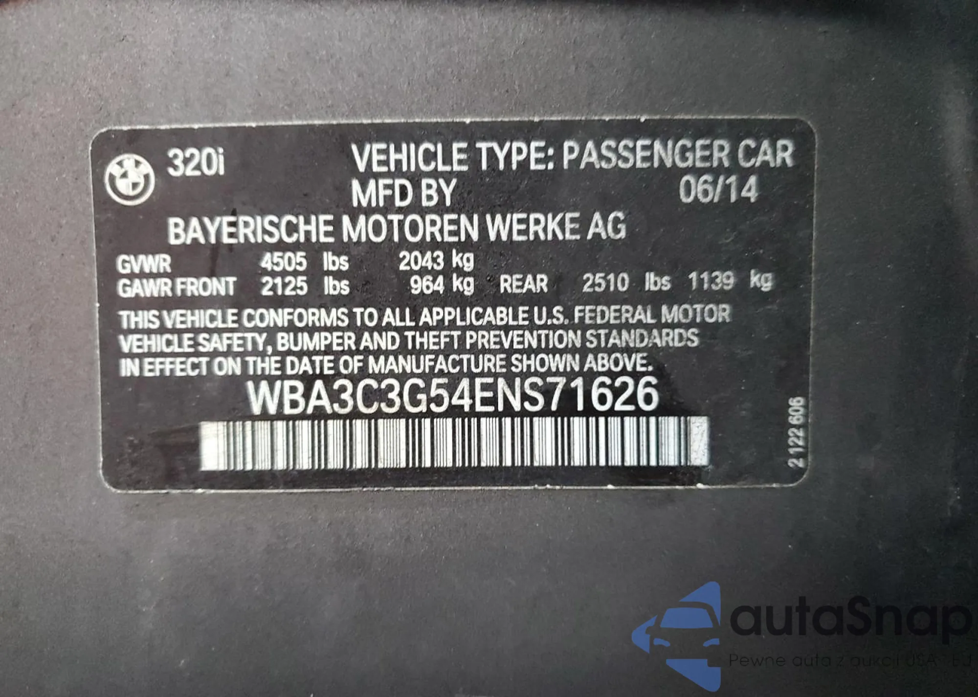 LOT: 85373364 VIN: WBA3C3G54ENS71626