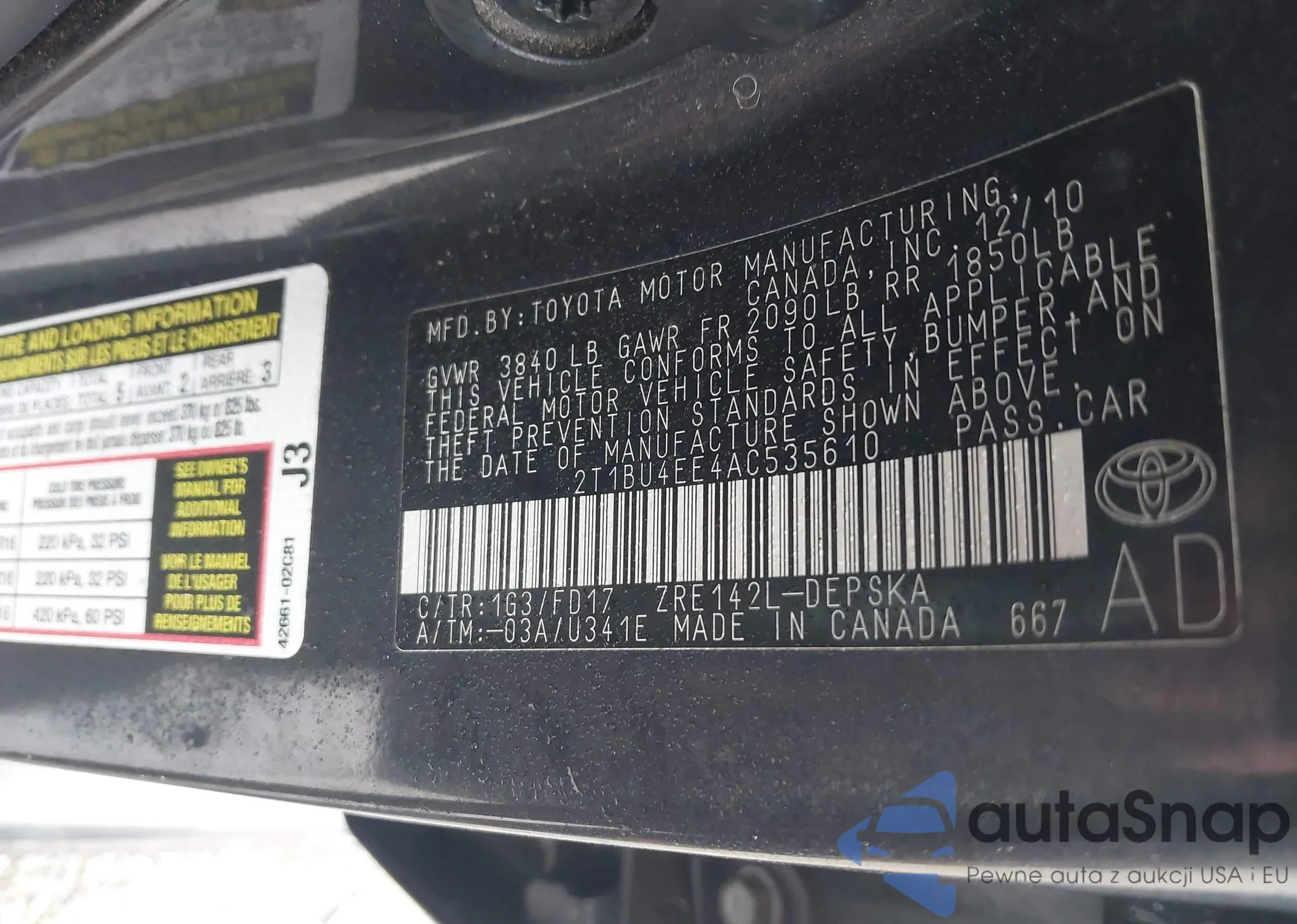 • VIN 2T1BU4EE4AC535610