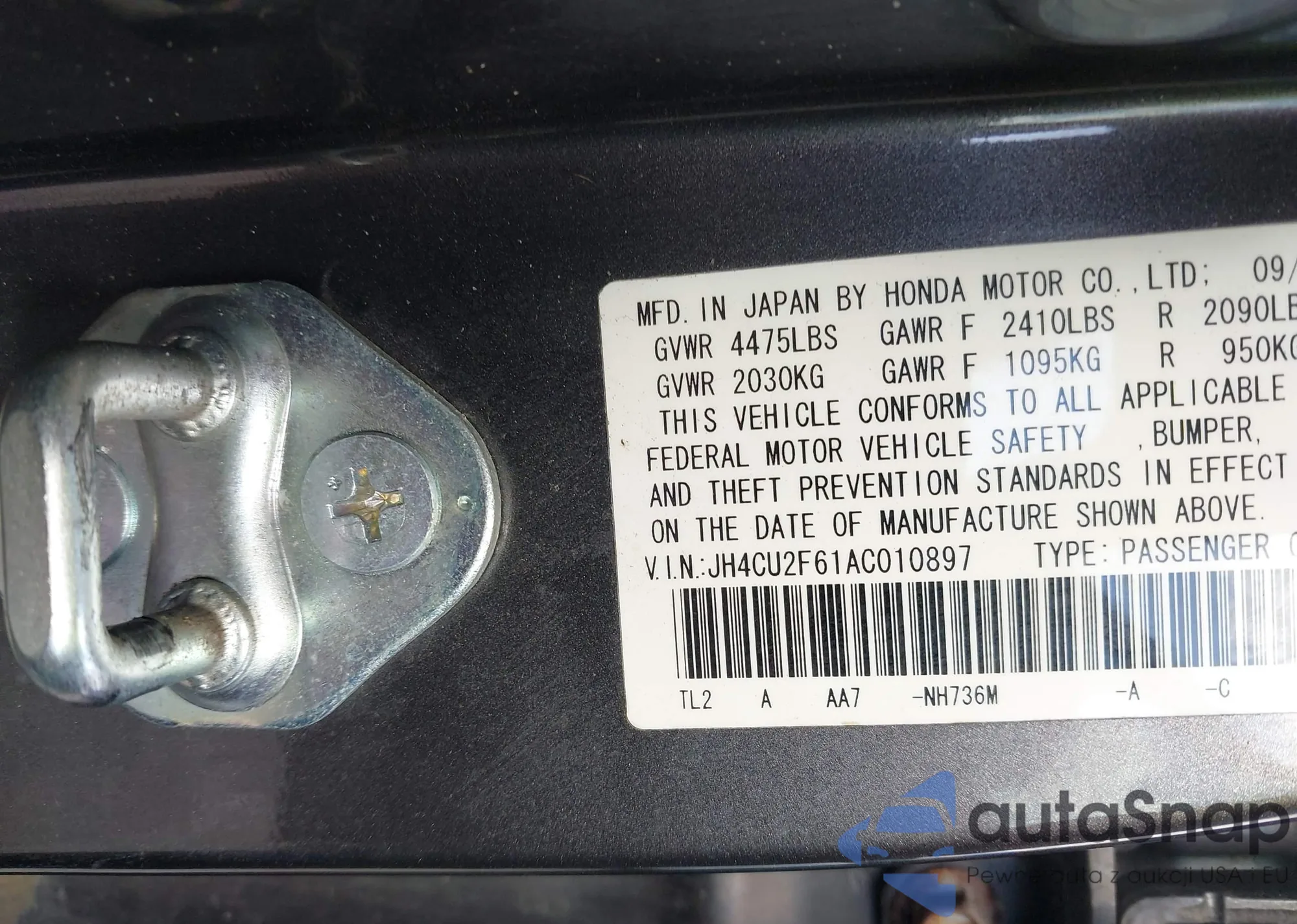 • VIN JH4CU2F61AC010897