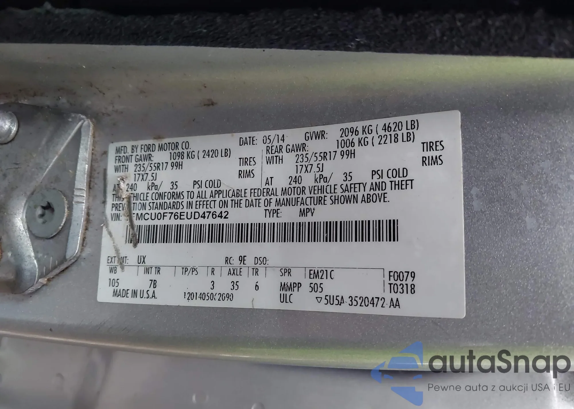 LOT: 41538494 VIN: 1FMCU0F76EUD47642