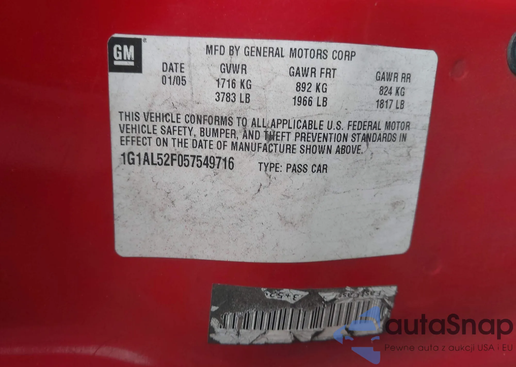 • VIN 1G1AL52F057549716