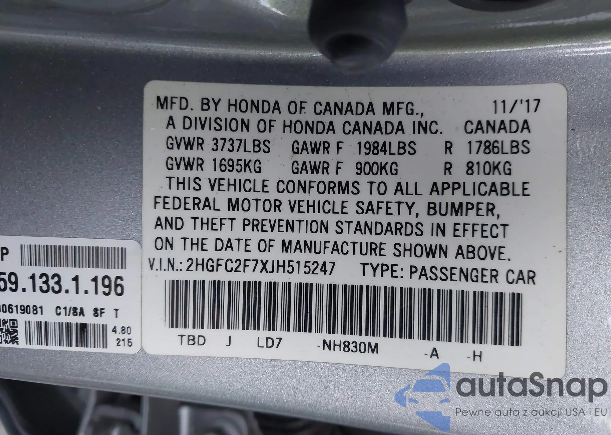 • VIN 2HGFC2F7XJH515247