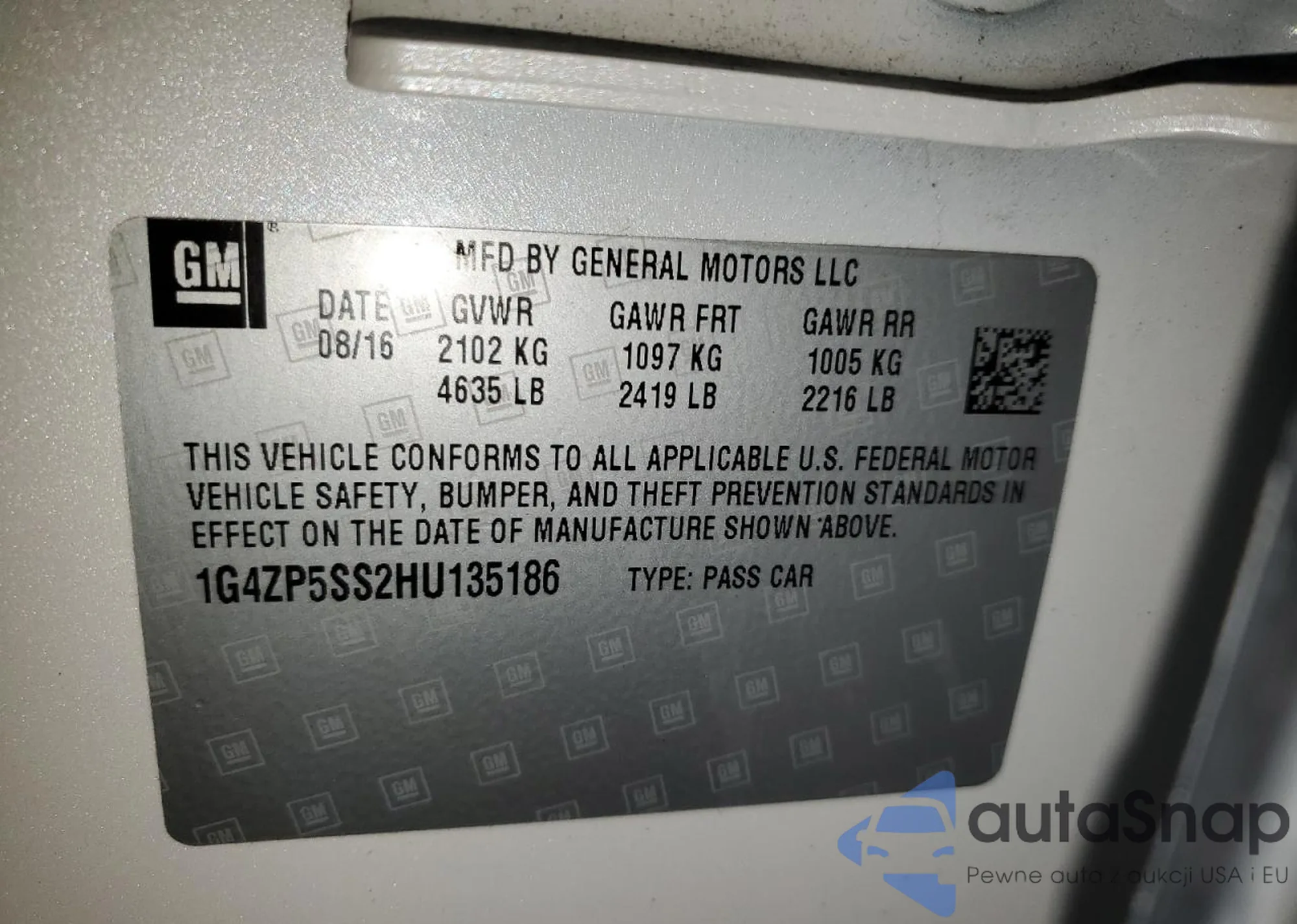 • VIN 1G4ZP5SS2HU135186