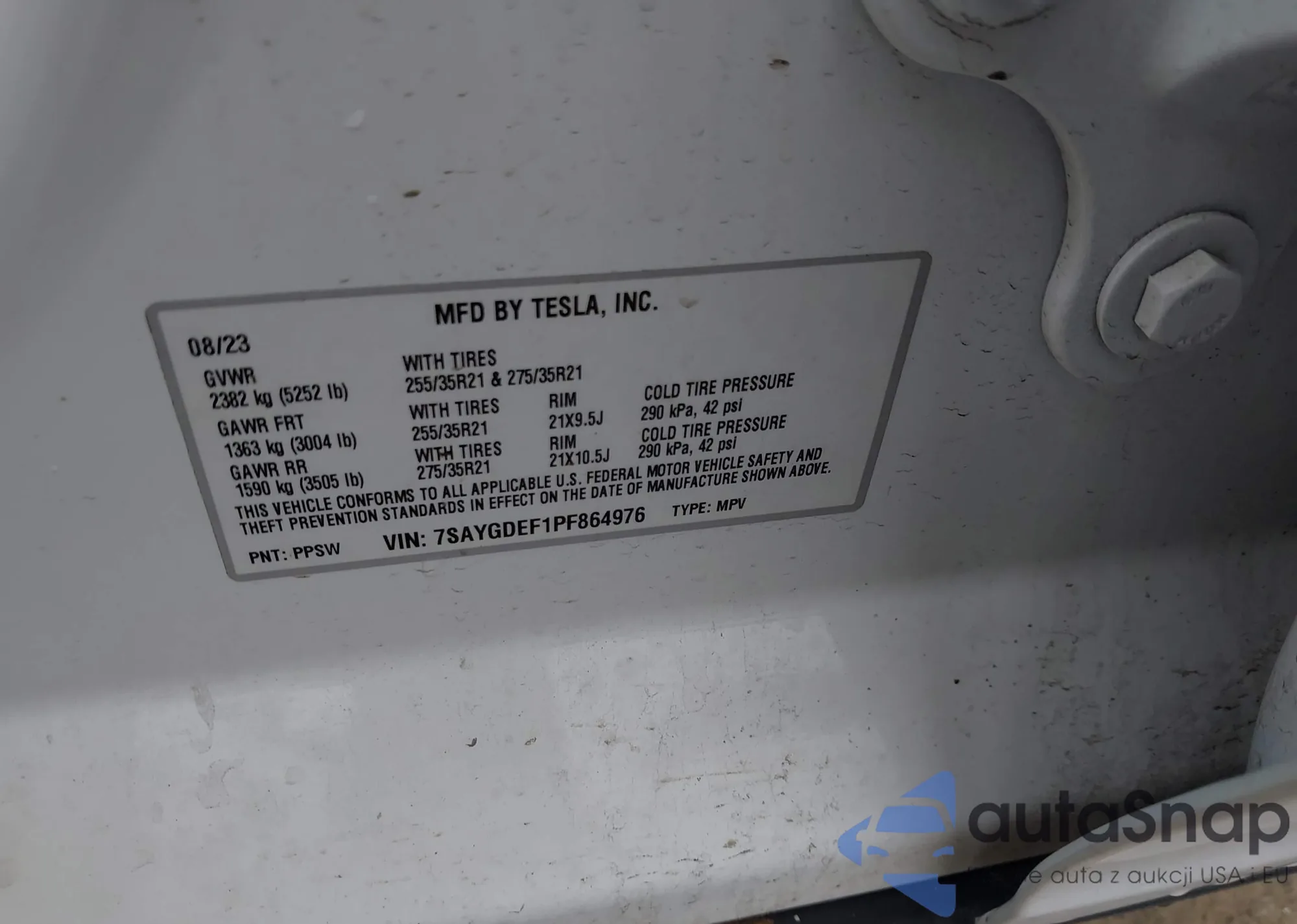• VIN 7SAYGDEF1PF864976