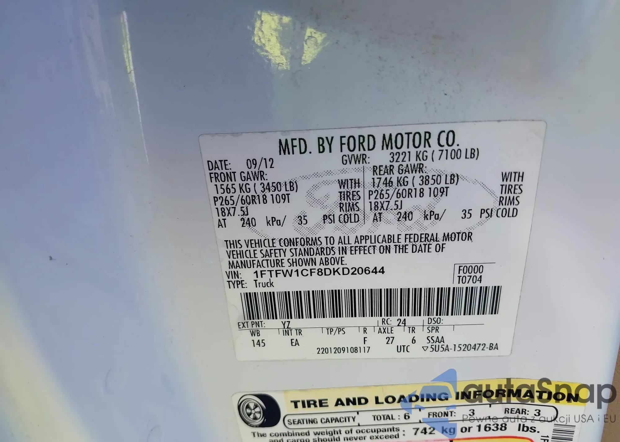 LOT: 40810249 VIN: 1FTFW1EF2EKF64210