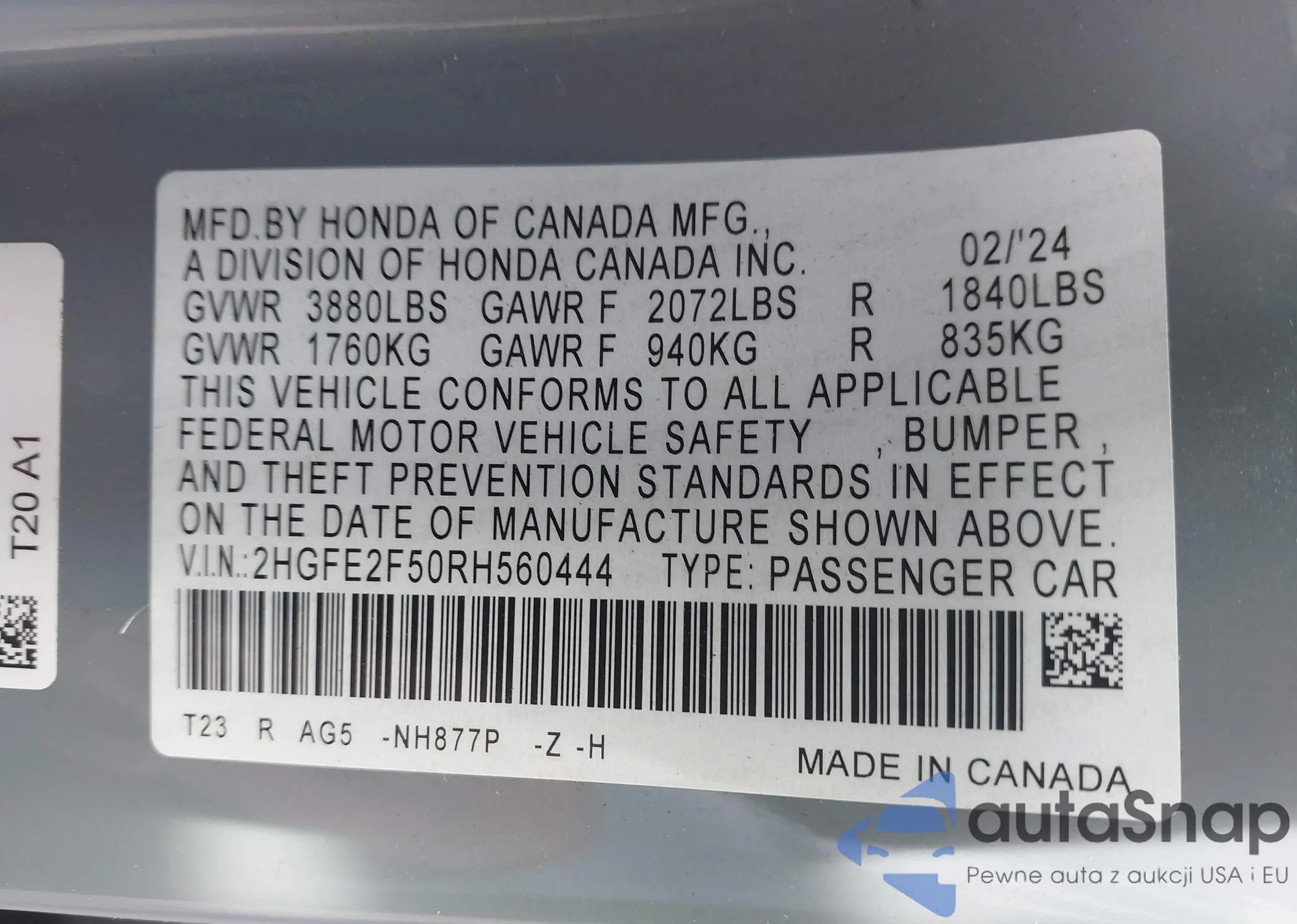 • VIN 2HGFE2F50RH560444