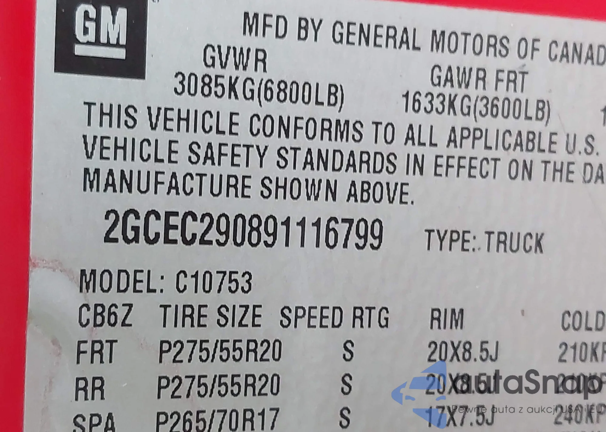 • VIN 2GCEC290891116799