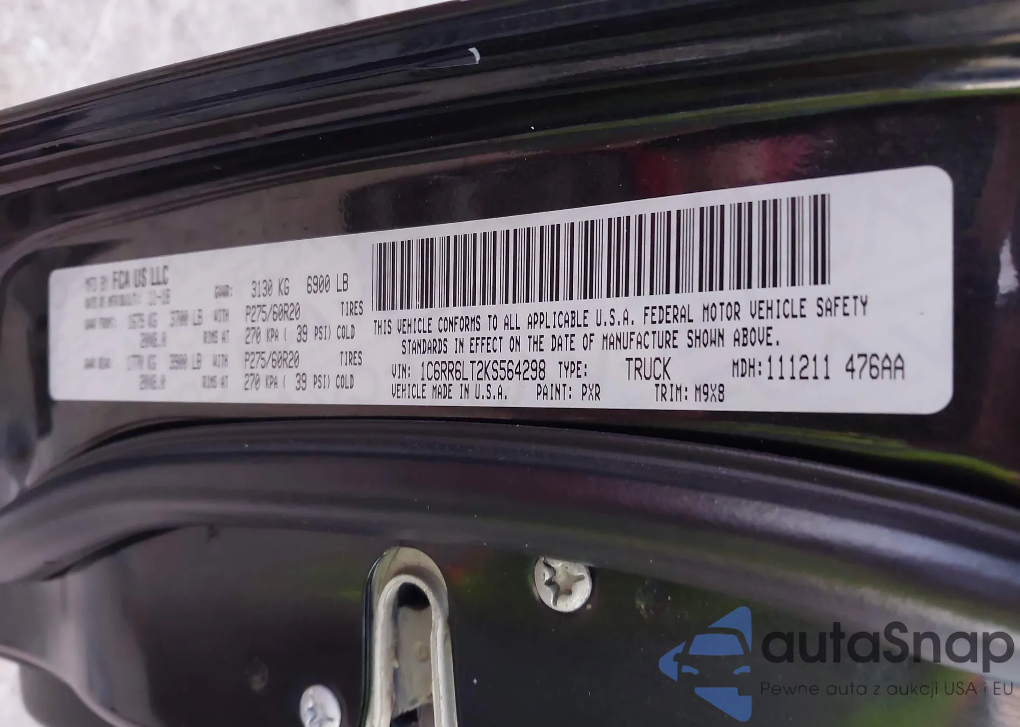 LOT: 41487476 VIN: SHHFK7H44KU225657