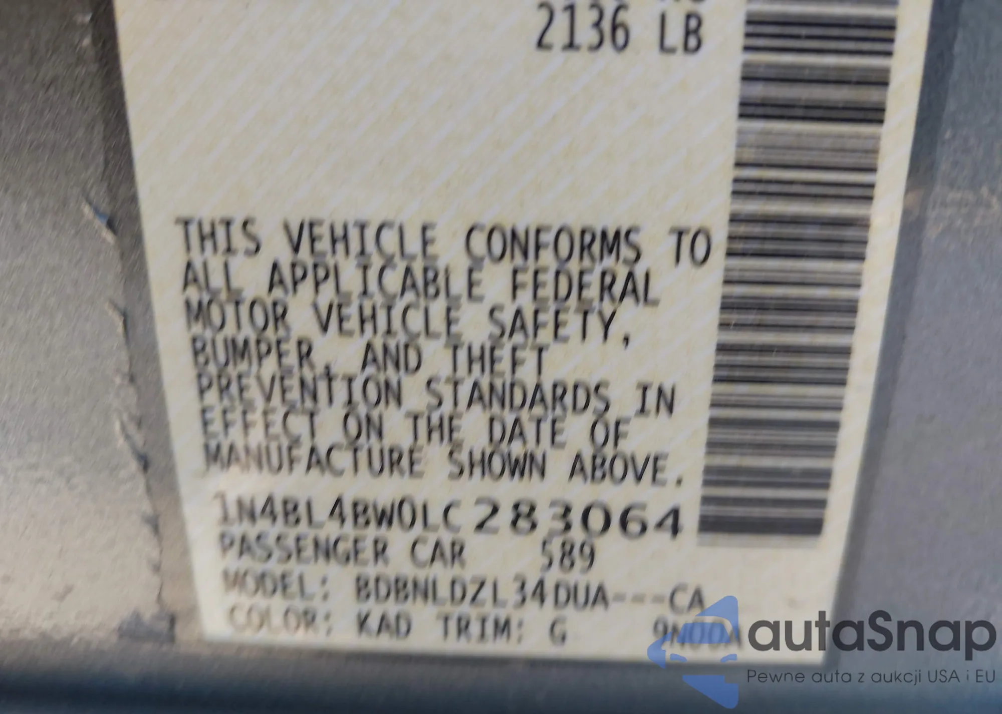 LOT: 41530608 VIN: 1N4AL2AP9BN486905