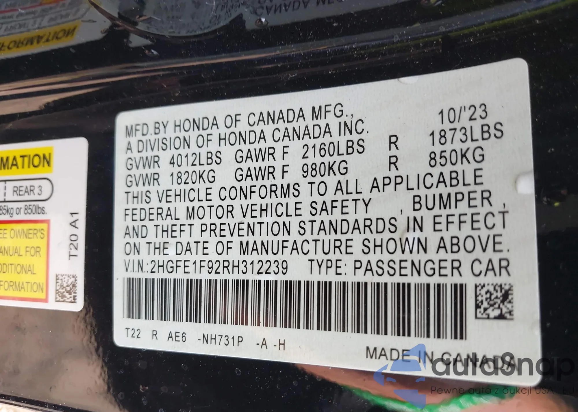 • VIN 2HGFE1F92RH312239