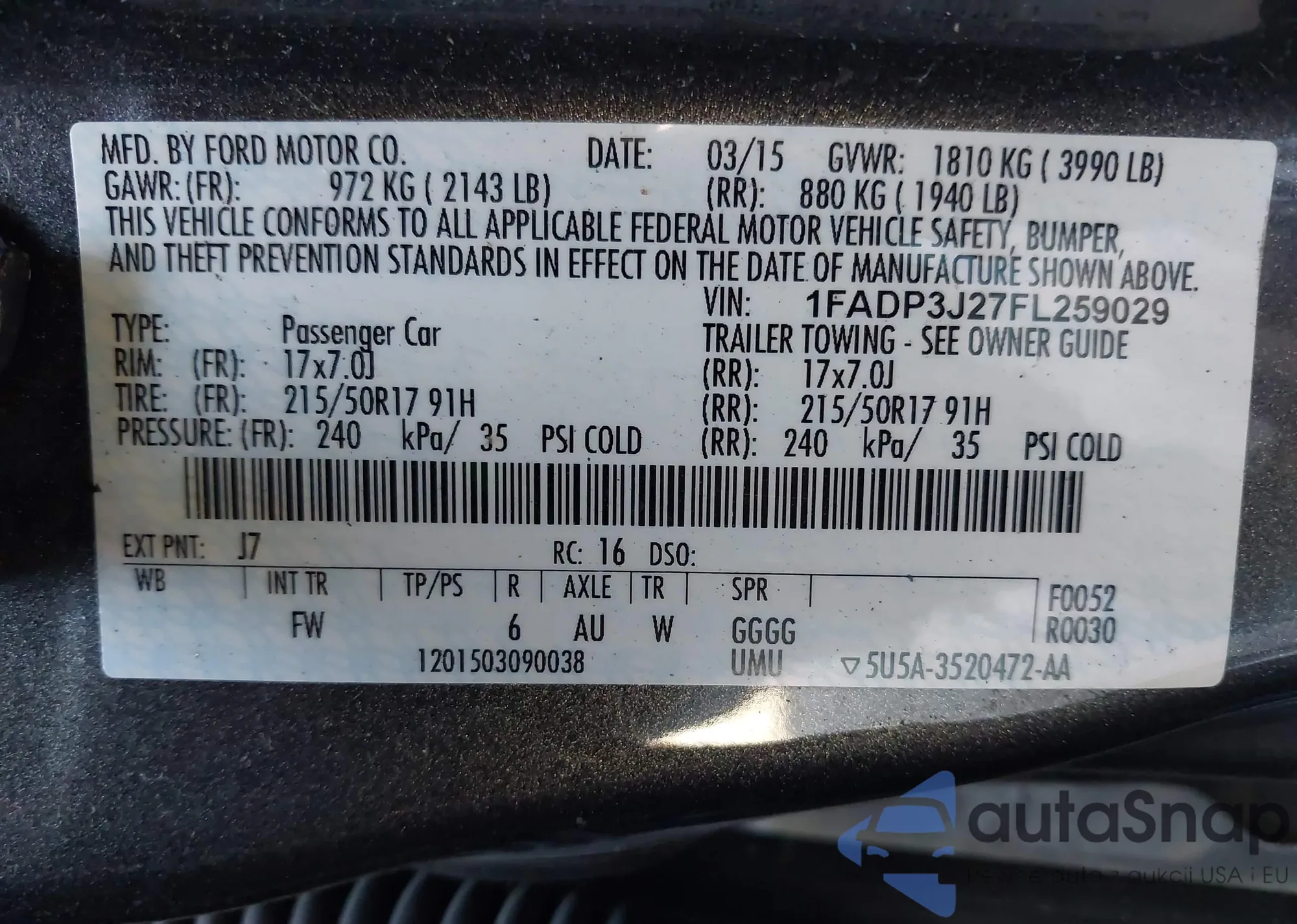 LOT: 41329558 VIN: 1N4AL3APXFC228013