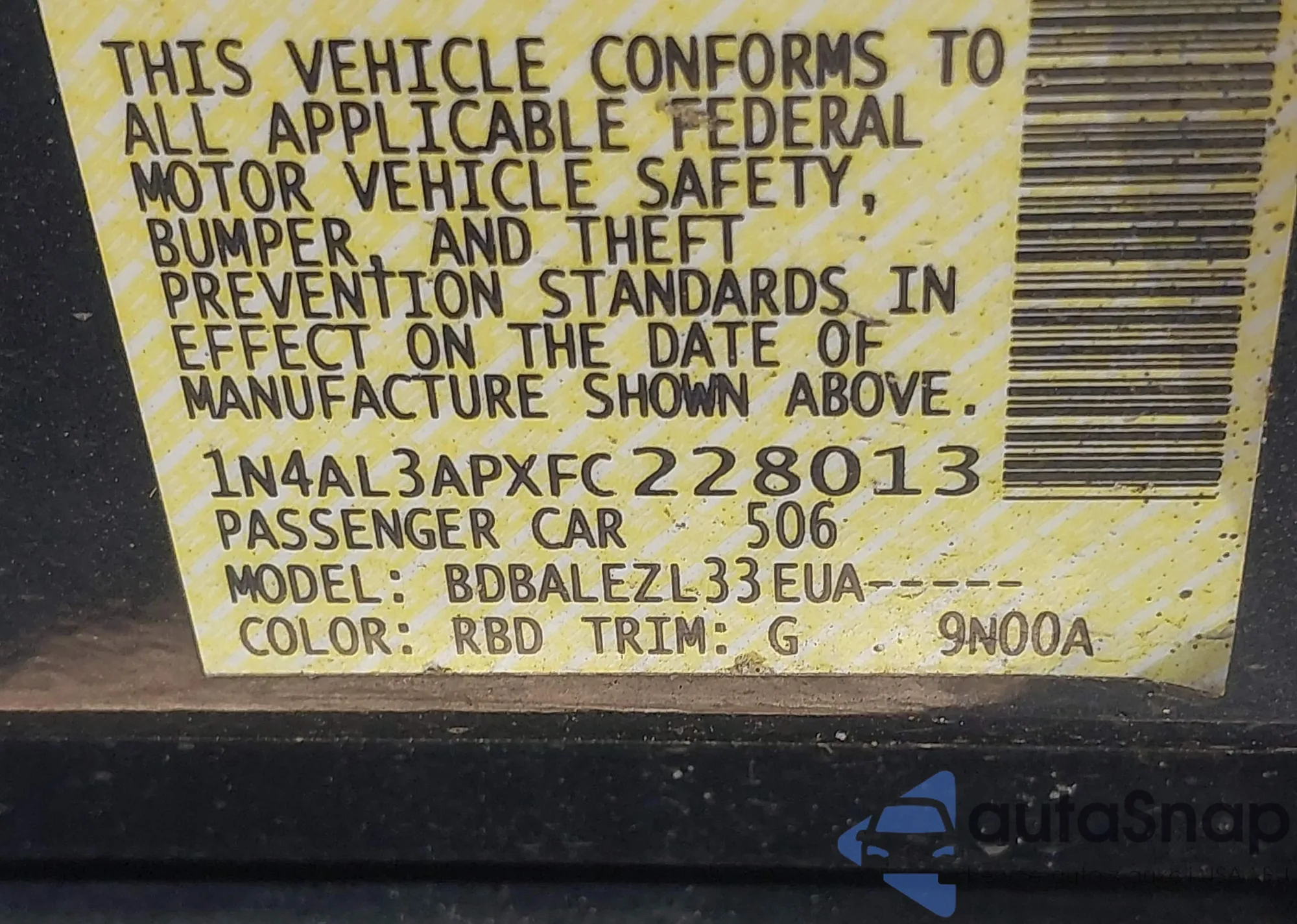 • VIN 1N4AL3APXFC228013