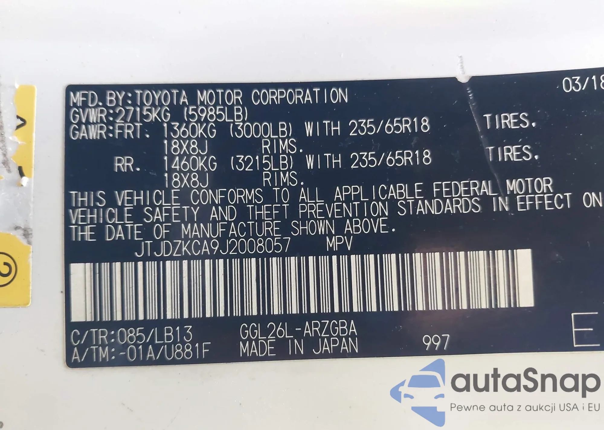 • VIN 4T1B11HK2KU761413