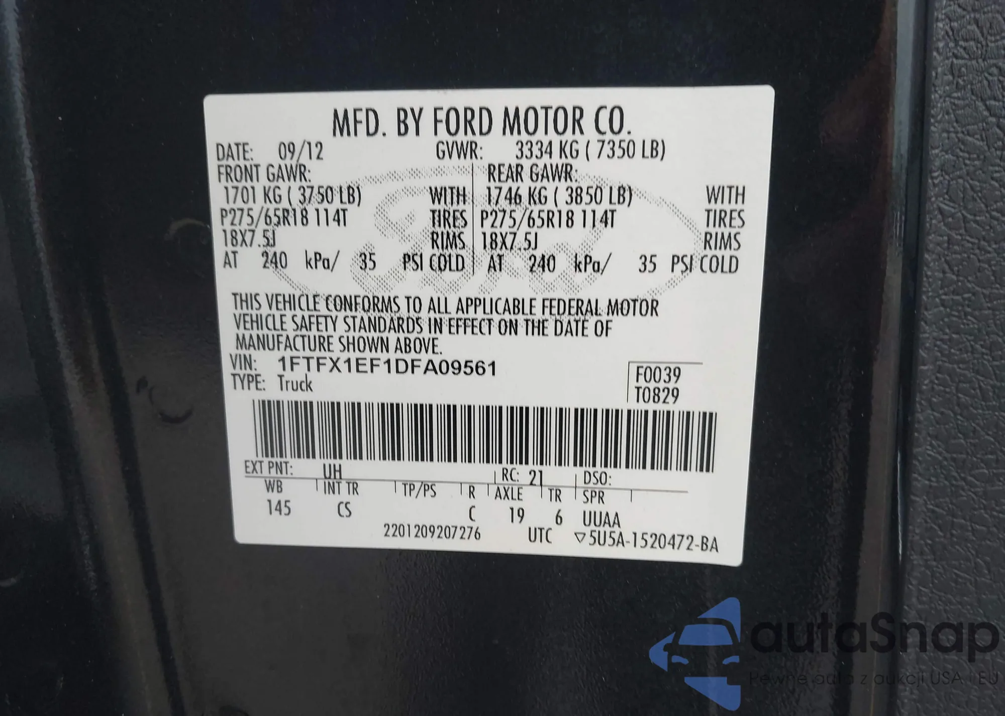 • VIN 1FTFX1EF1DFA09561