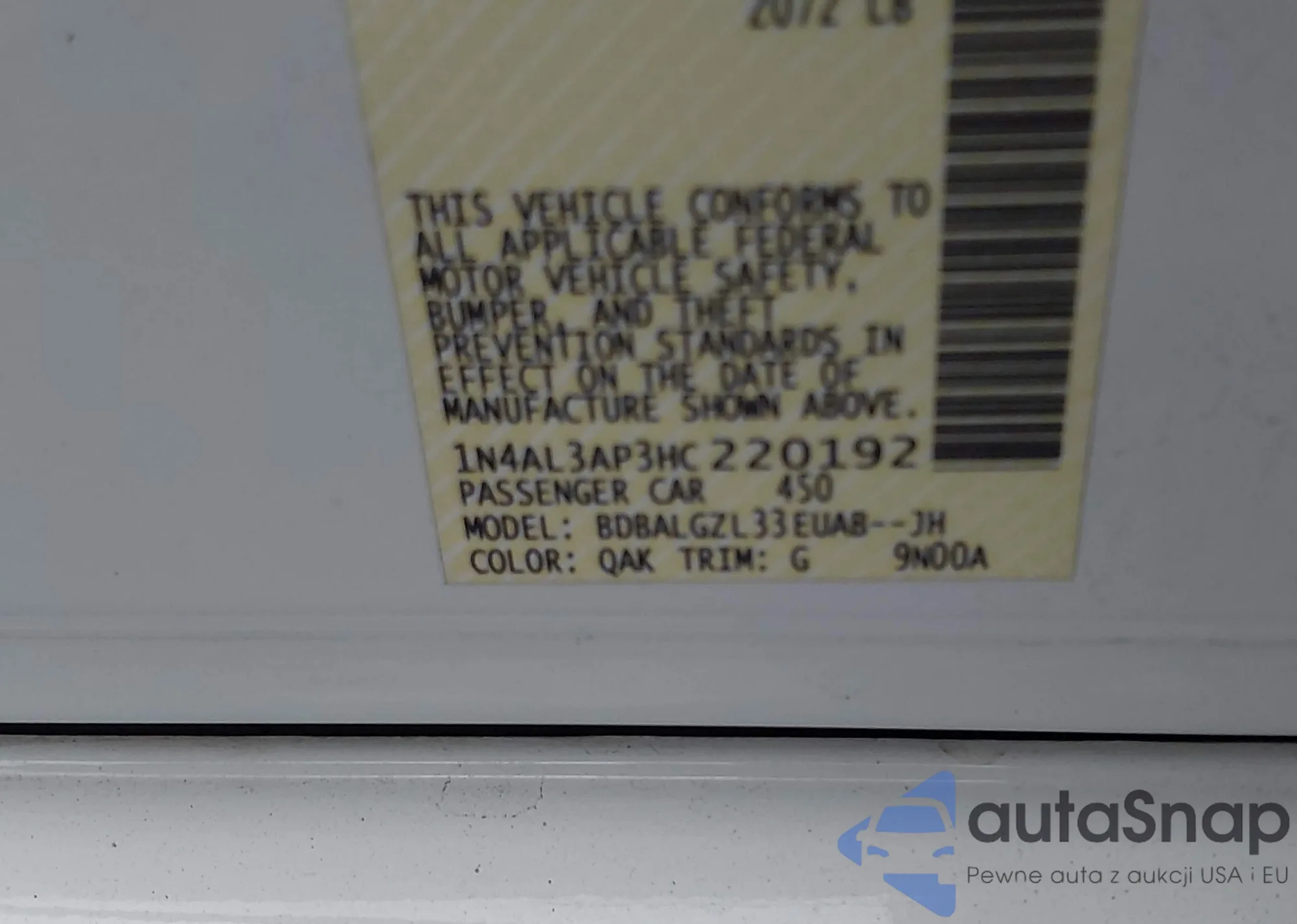 LOT: 41048614 VIN: 1N4AL3AP3HC220192