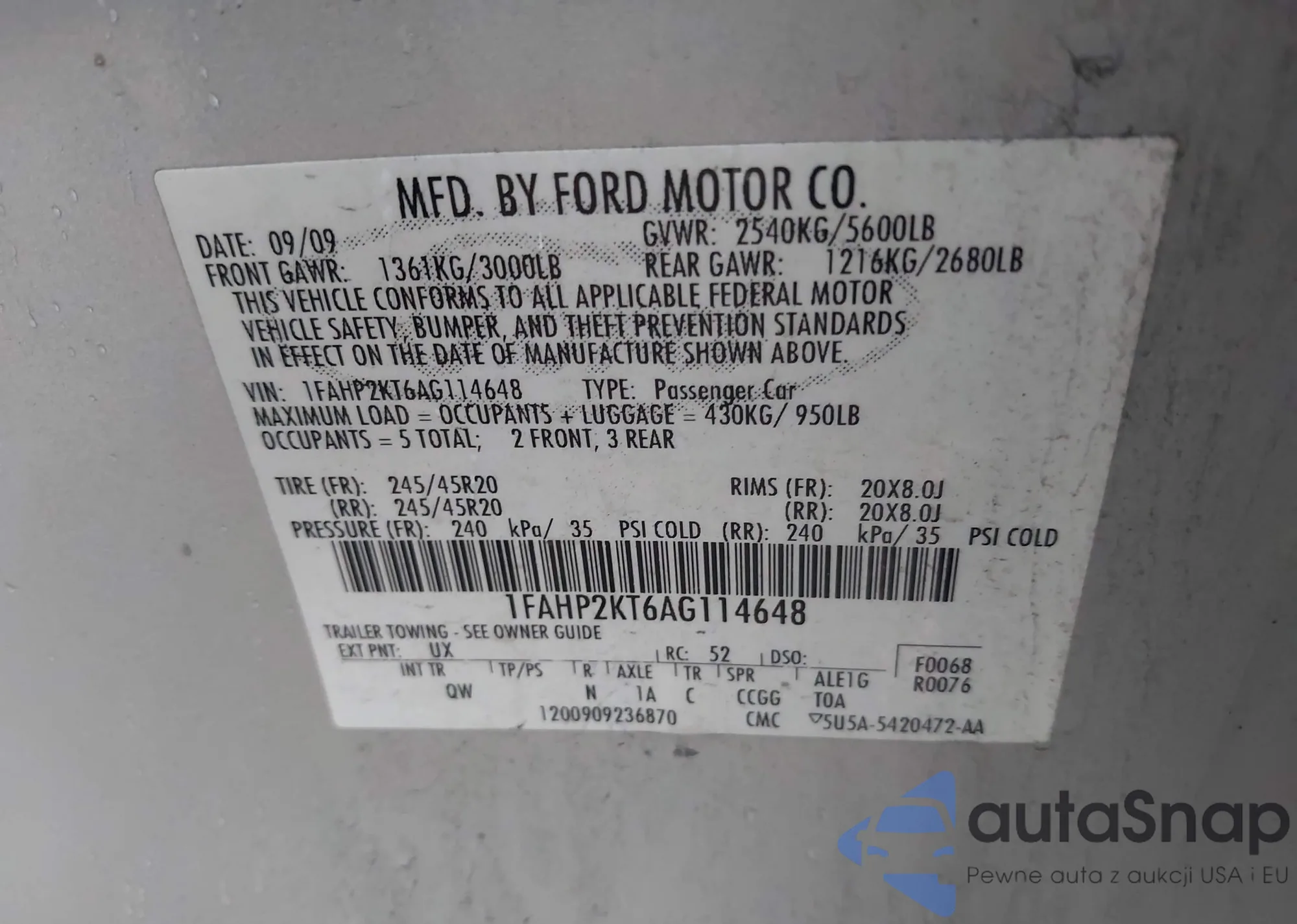 • VIN 1YVHZ8CH5B5M01083