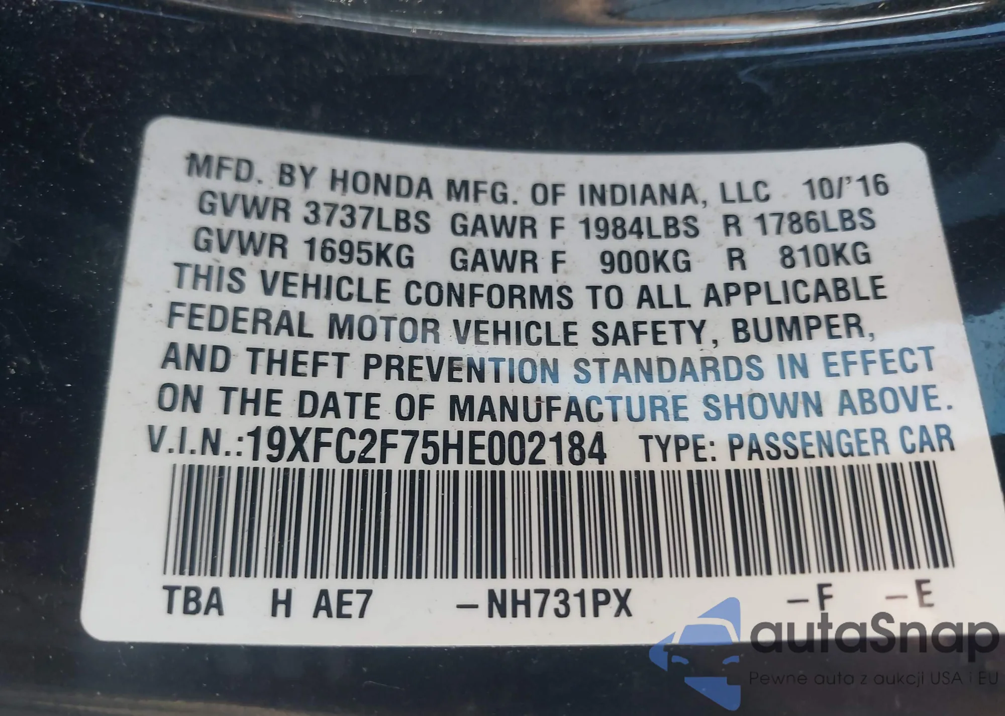 • VIN 19XFC2F73HE211908