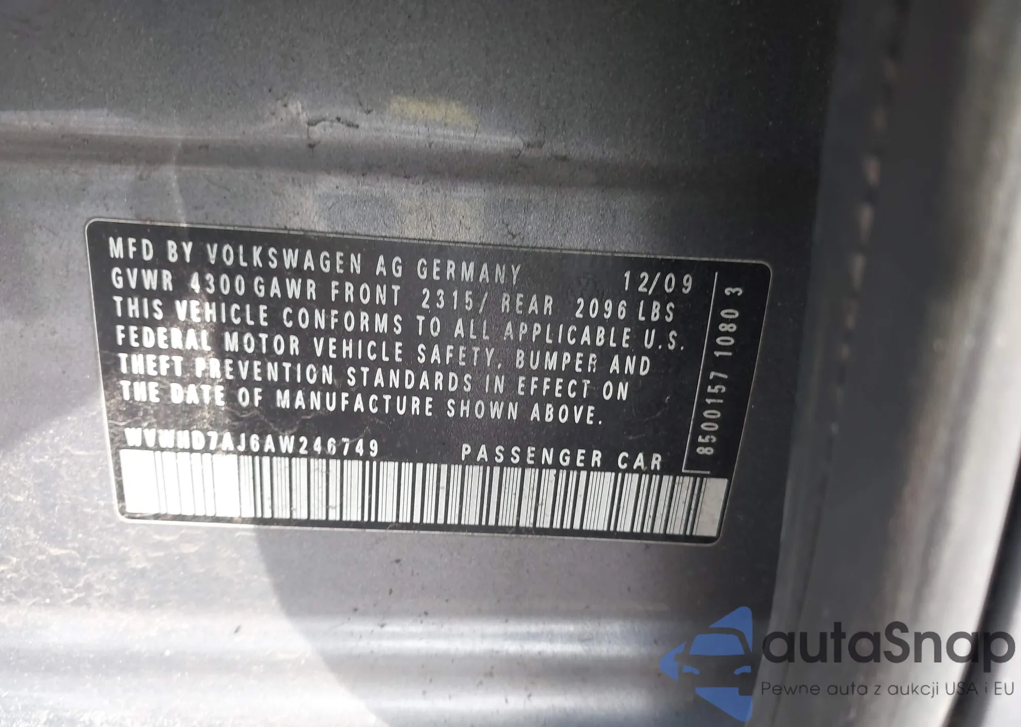 • VIN WVWHD7AJ6AW246749
