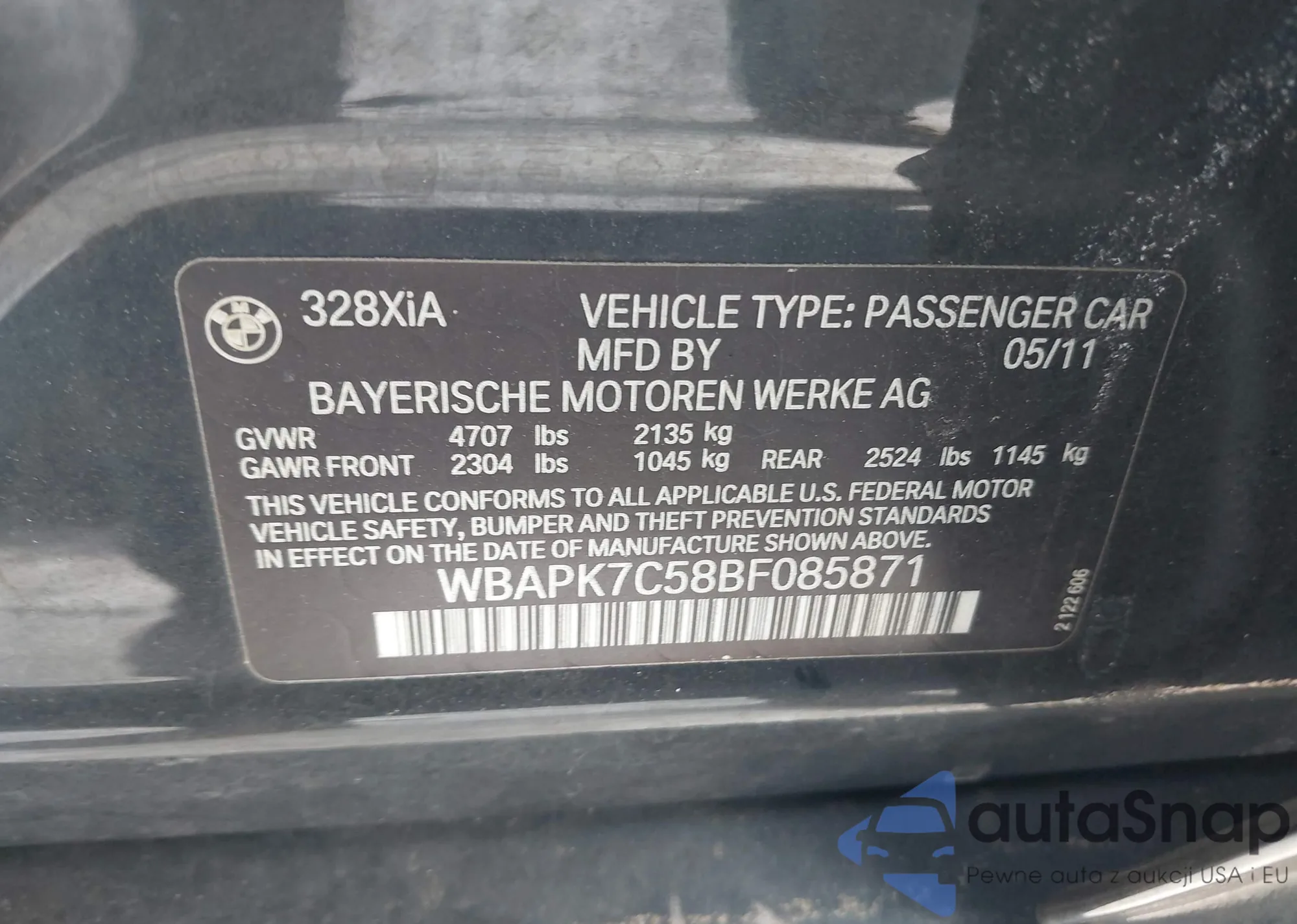 • VIN WBAPK7C58BF085871