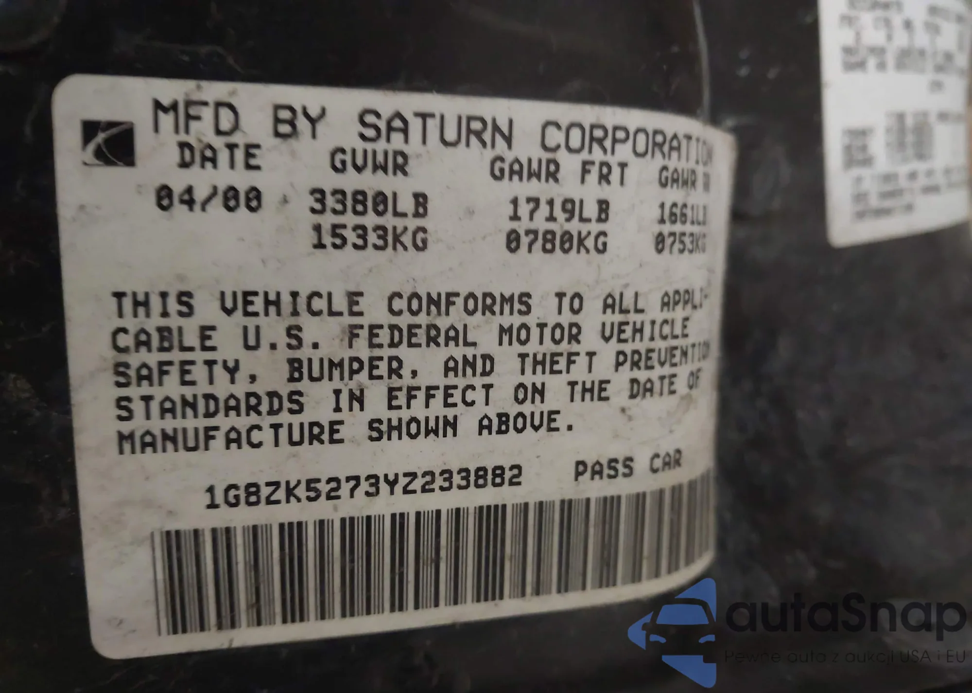 • VIN 1G8ZK5273YZ233882