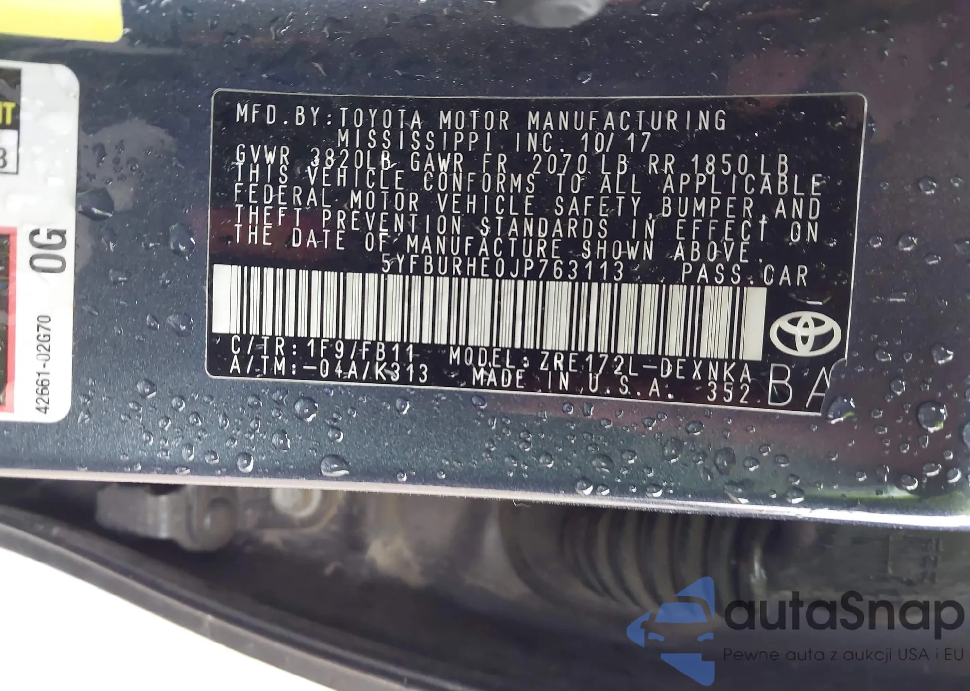 • VIN 5YFBURHE0JP763113