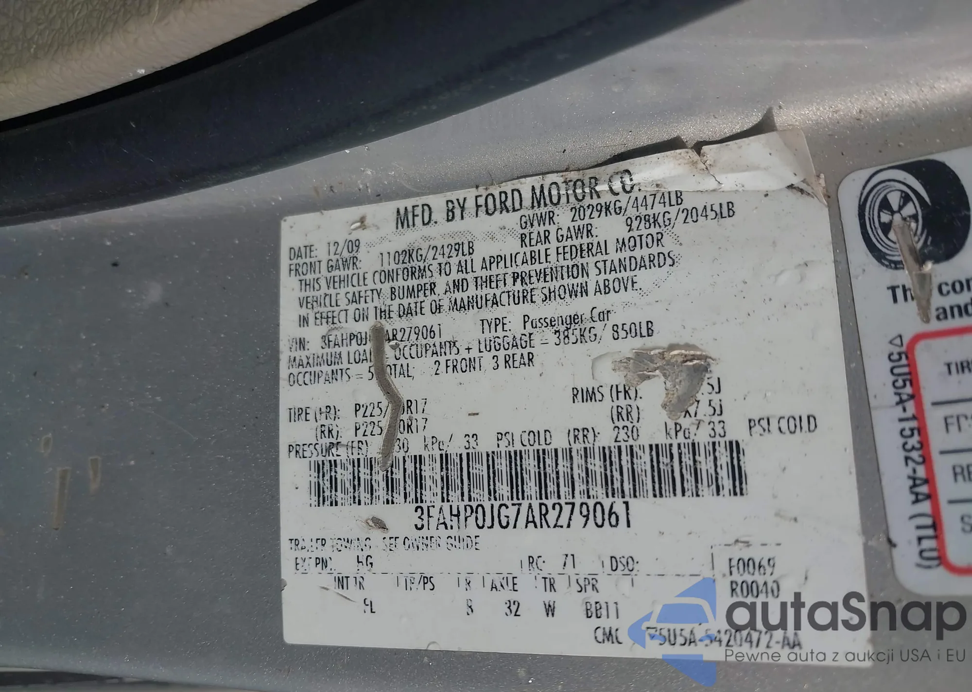 • VIN 3FAHP0JG7AR279061