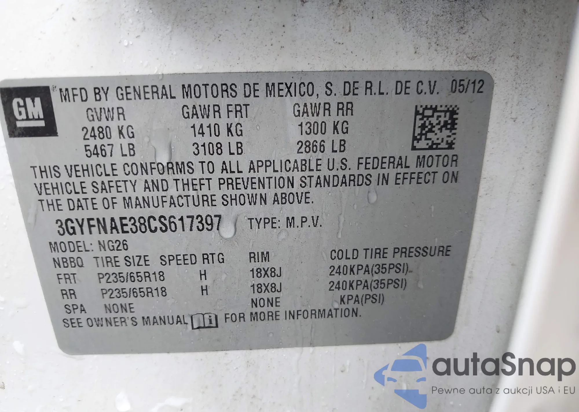 • VIN 3GYFNAE38CS617397
