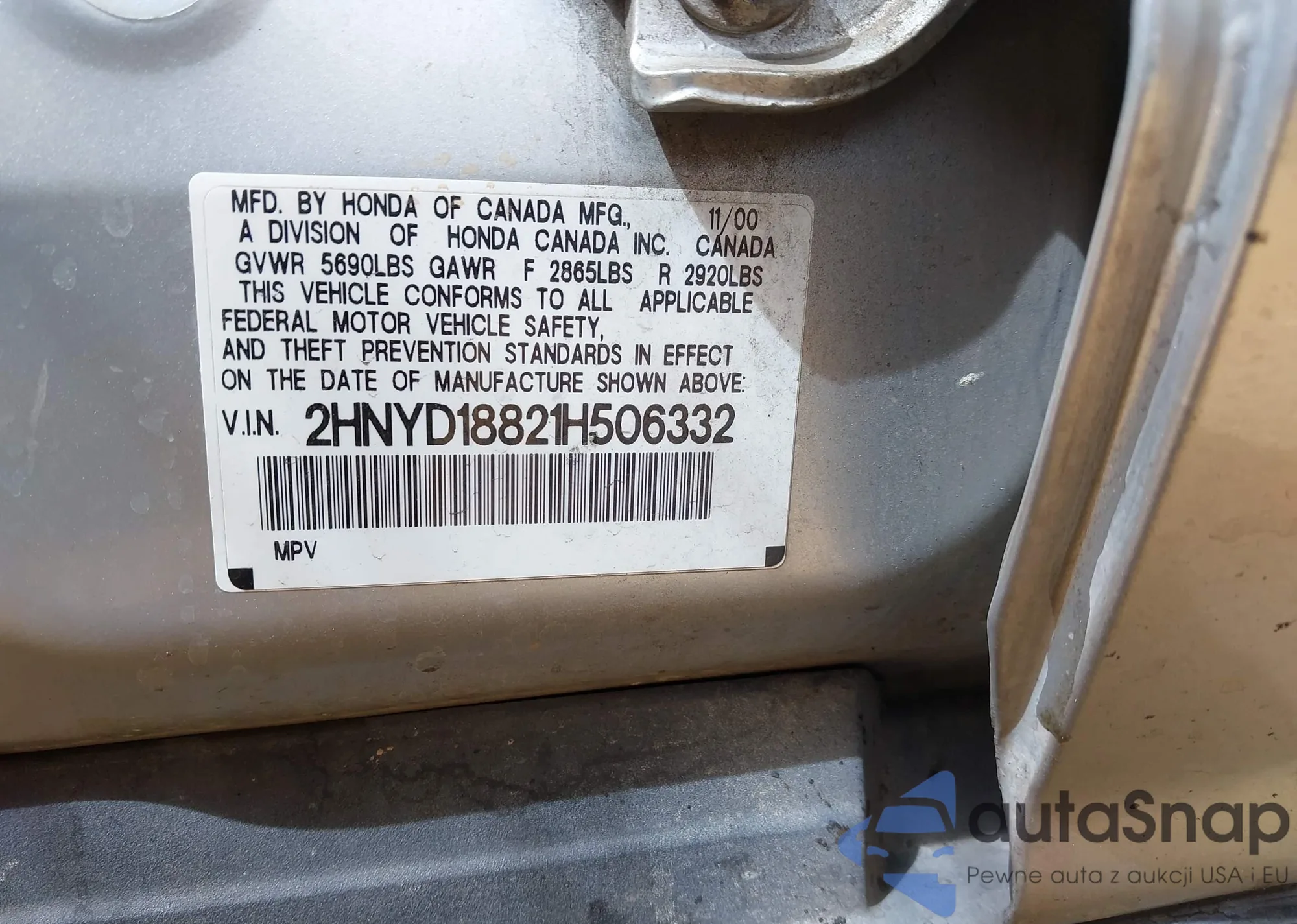 • VIN 2HNYD18821H506332