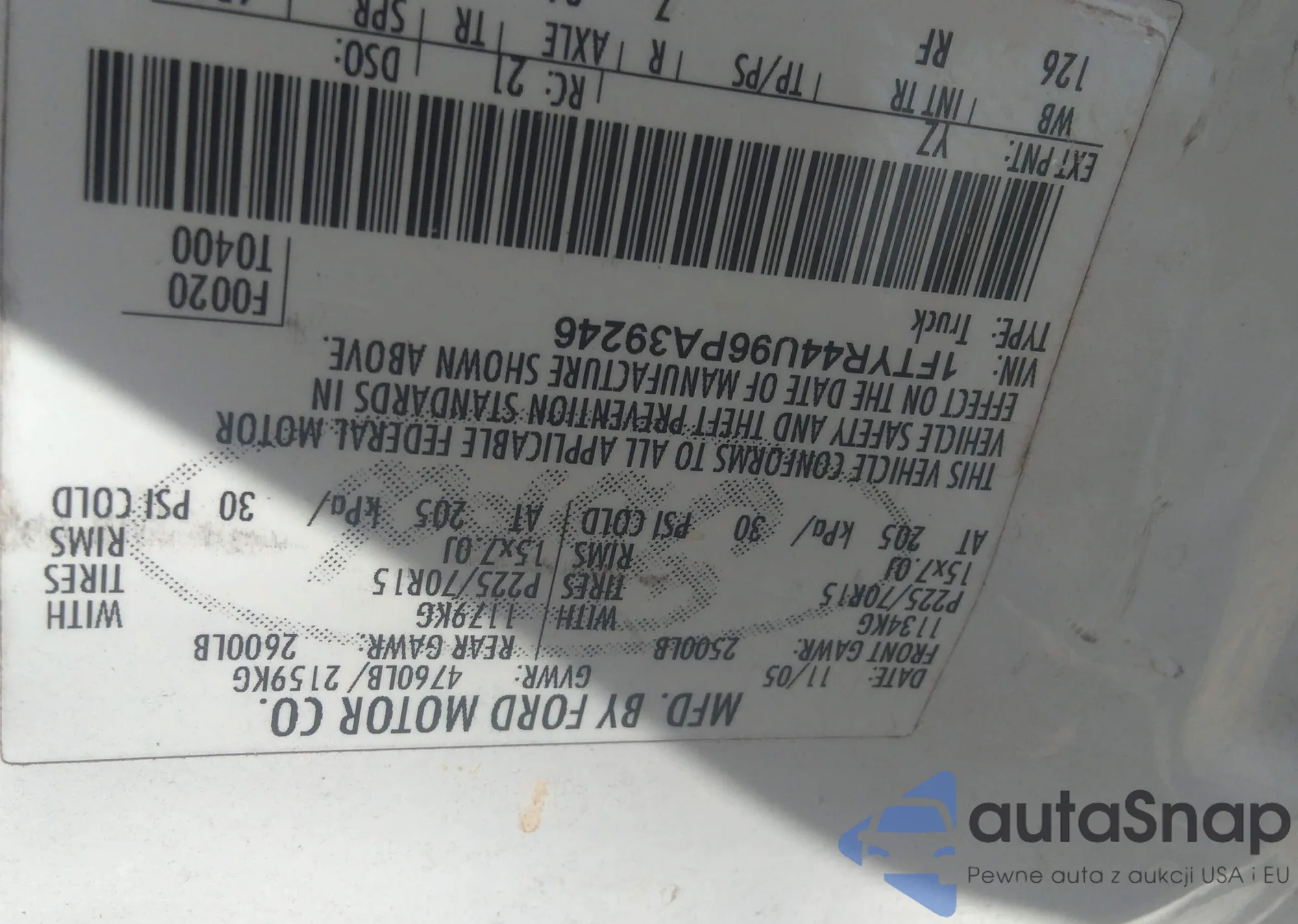 1995 Ford F150 from USA, damaged, VIN 1FTEX14H4SKA28155
