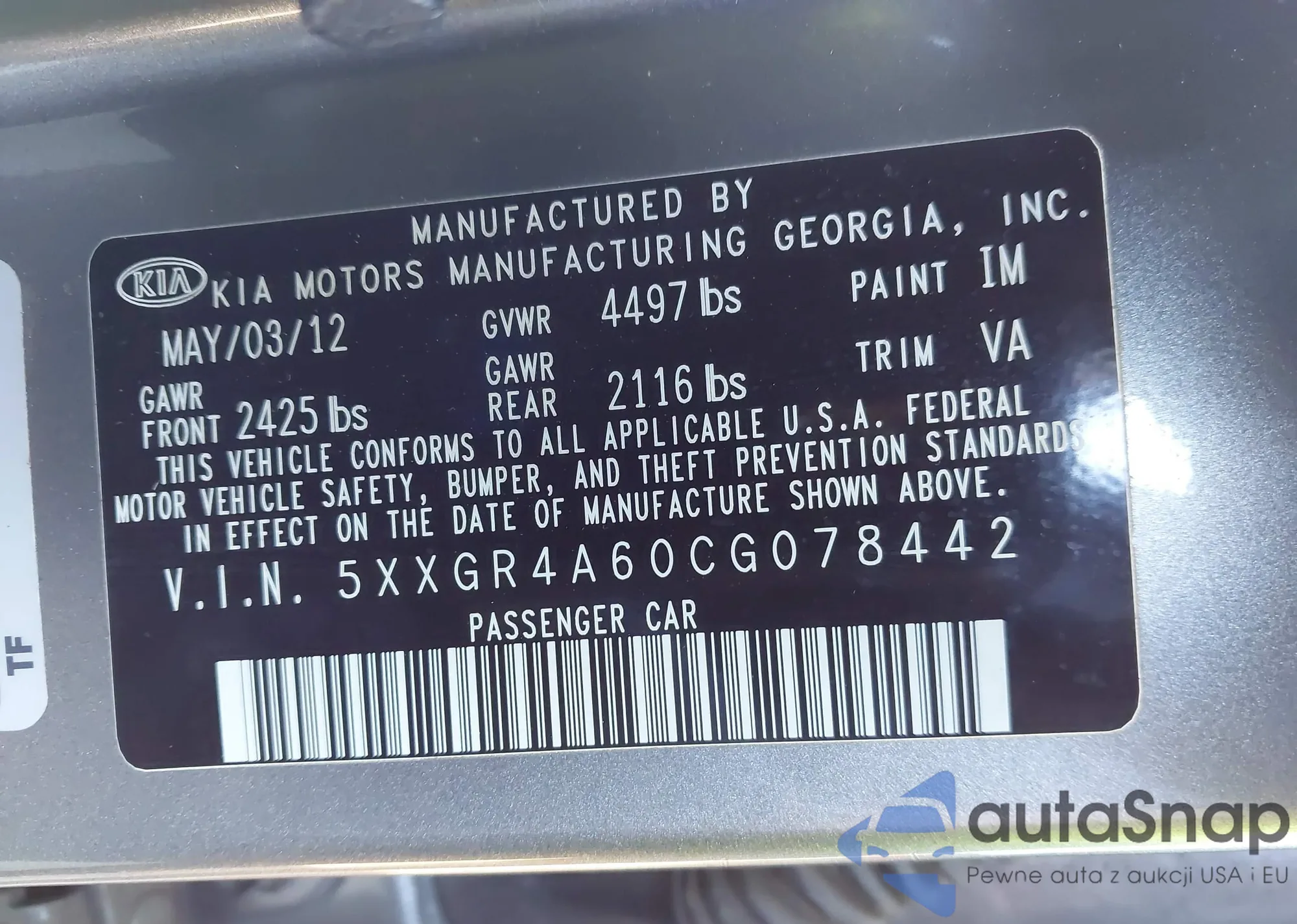 • VIN 5XXGR4A60CG078442