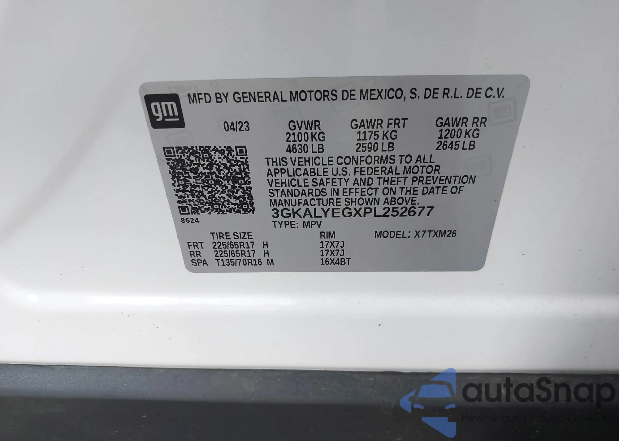 LOT: 41637199 VIN: 3GKALYEGXPL252677