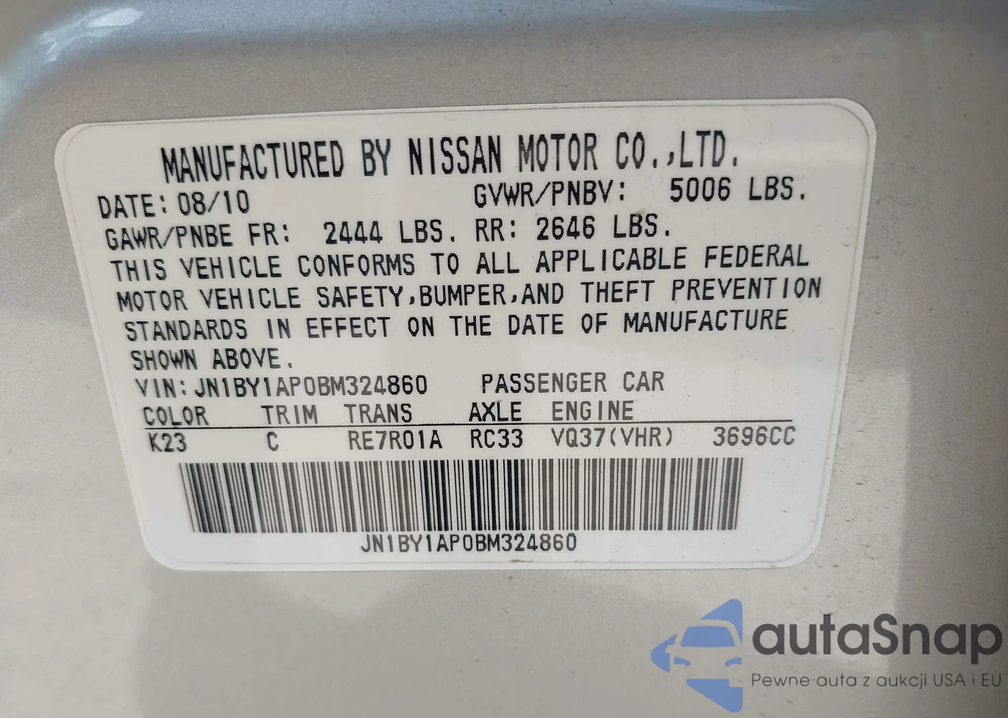 • VIN WAUV2AF25KN108812