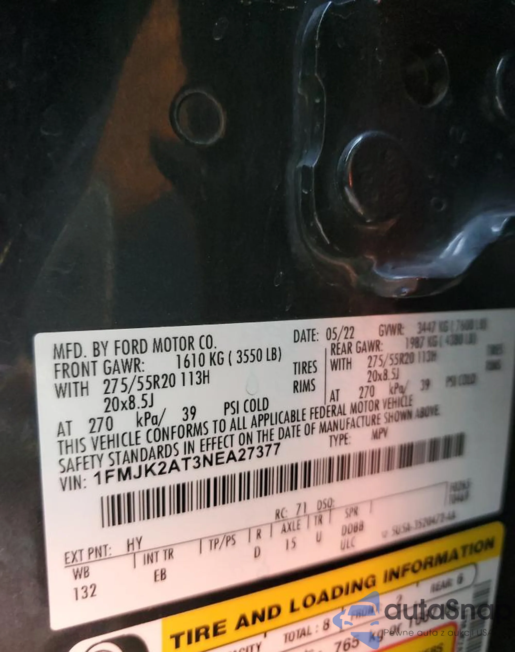 • VIN 1FMJK2AT3NEA27377