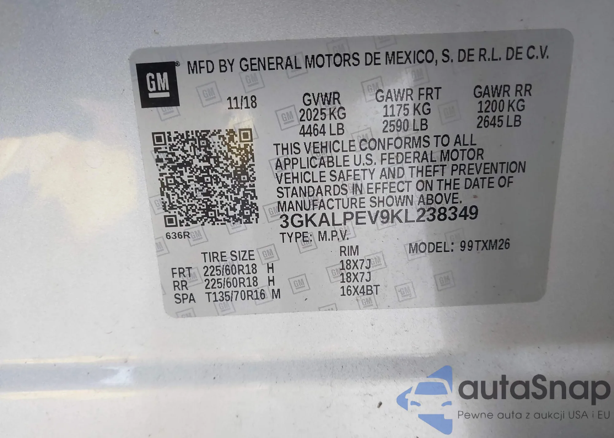 • VIN 3GKALPEV9KL238349