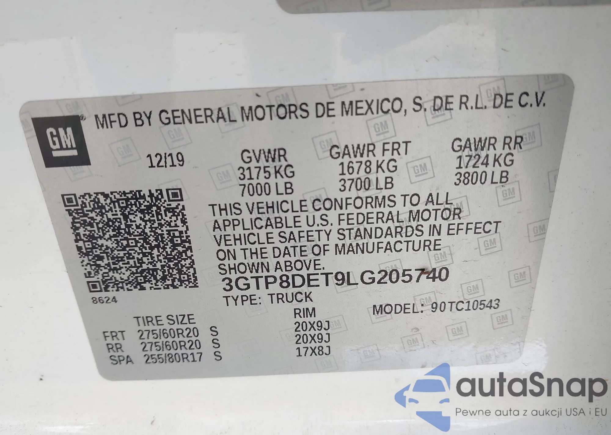 • VIN 3GTP8DET9LG205740