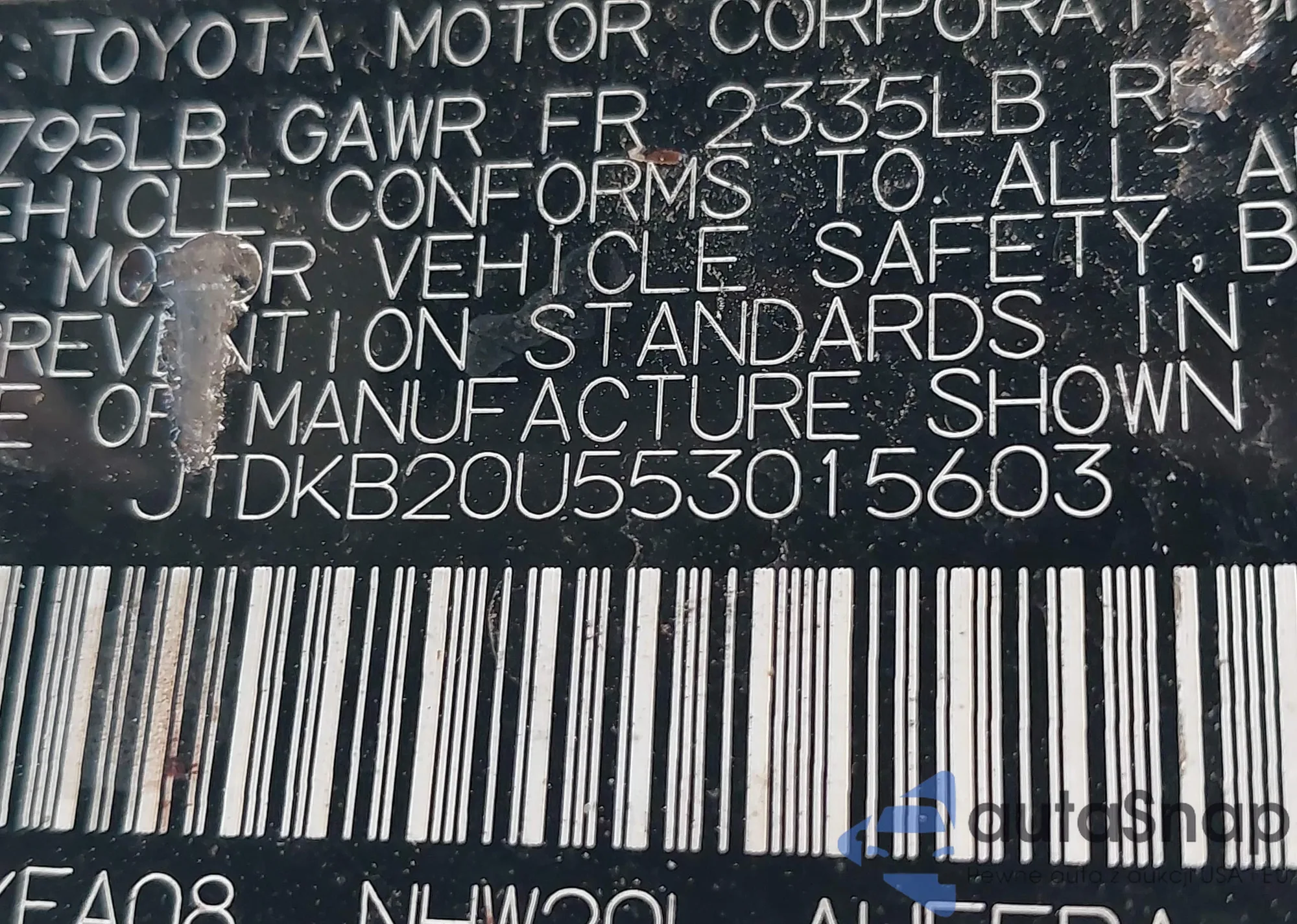 LOT: 40632400 VIN: JTDKB20U553015603