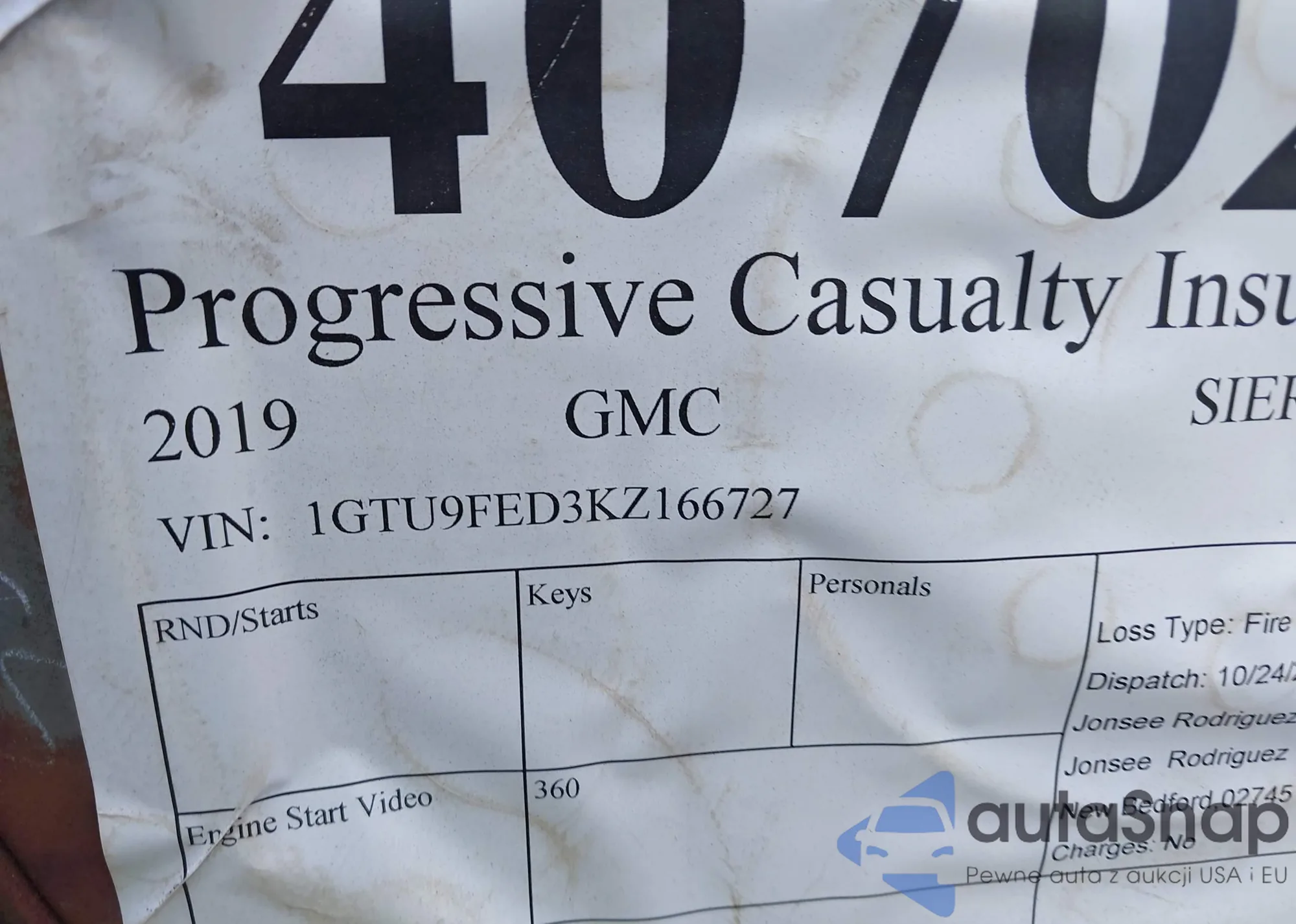 • Damage: Right front