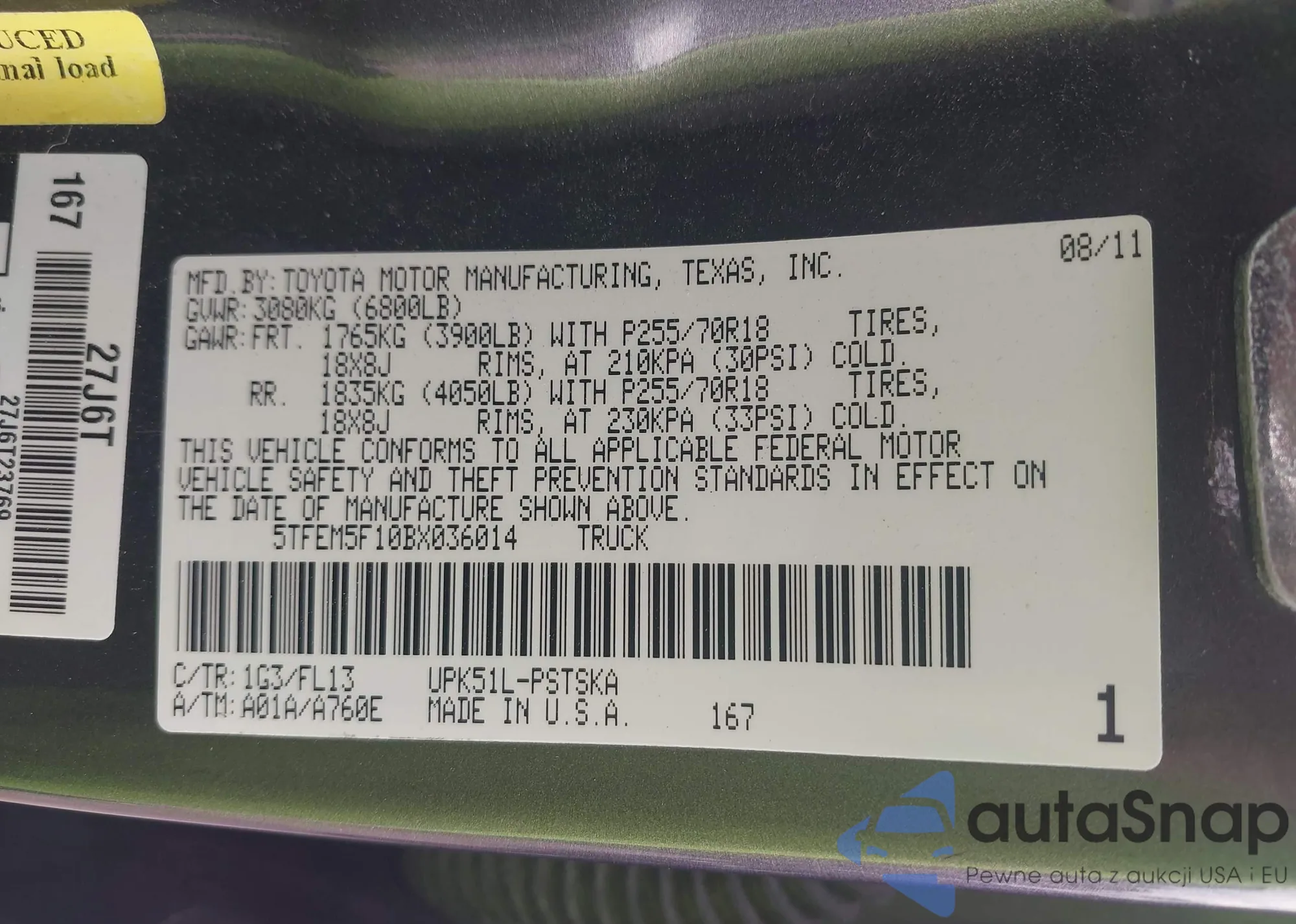 LOT: 41637952 VIN: 5TFEM5F10BX036014