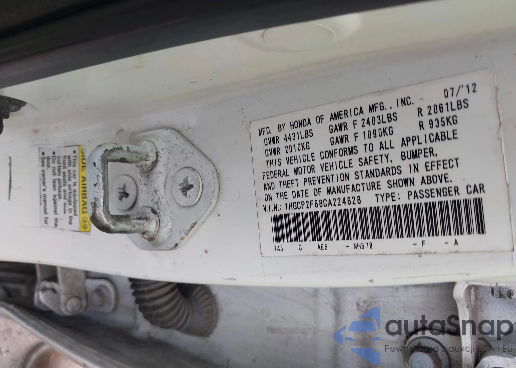 LOT: 41648869 VIN: 1HGCP2F88CA224828