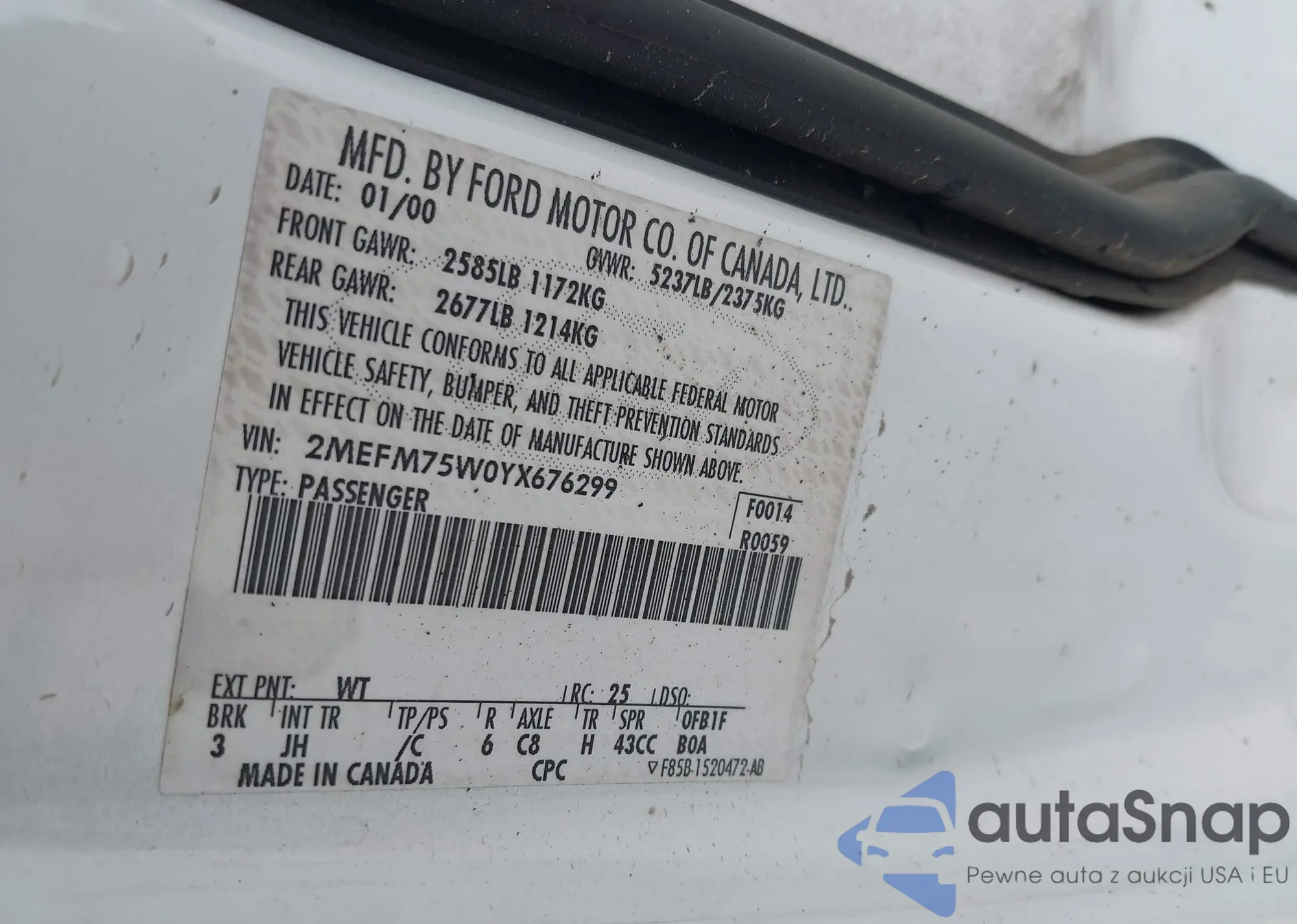 • VIN 2MEFM75W0YX676299