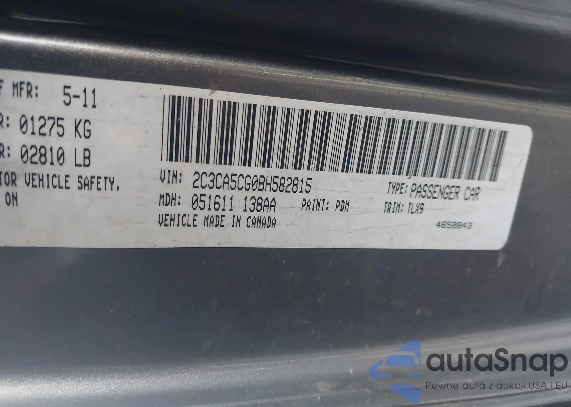 LOT: 31722013 VIN: 4T1BF3EKXBU173003