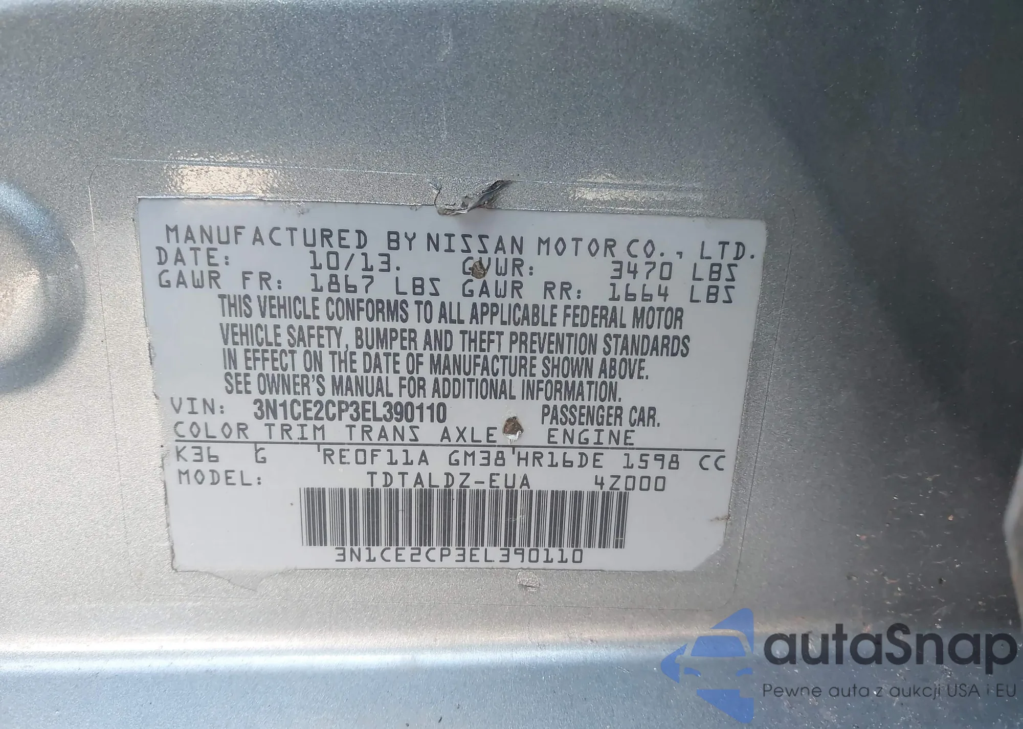 • VIN 3N1CE2CP3EL390110