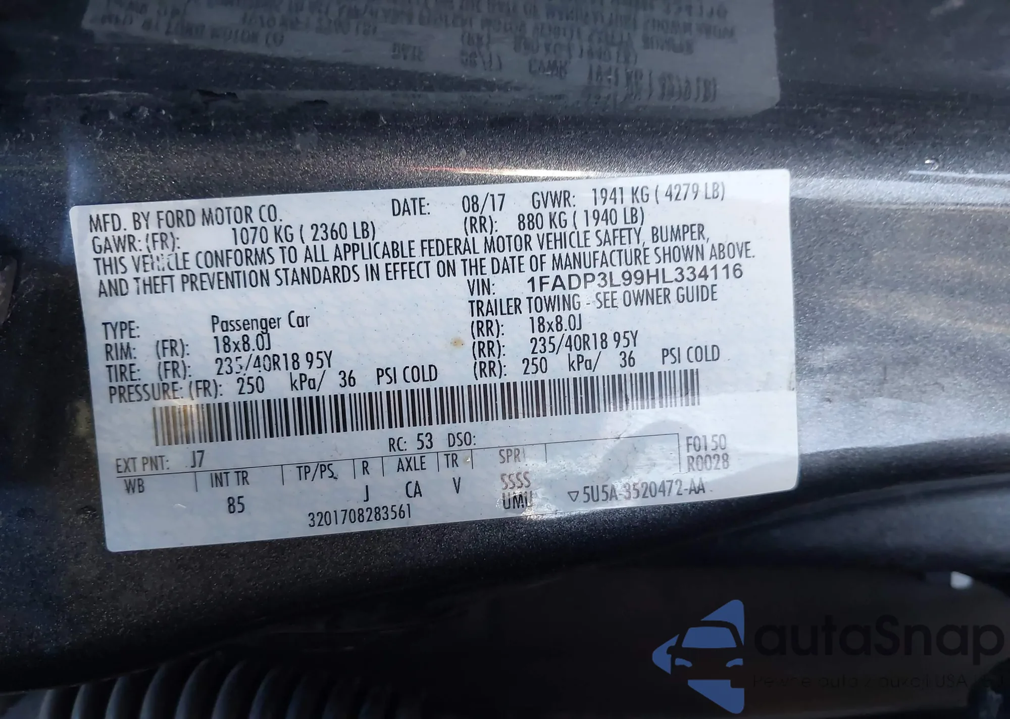 • VIN 3FADP4EJ7FM200598