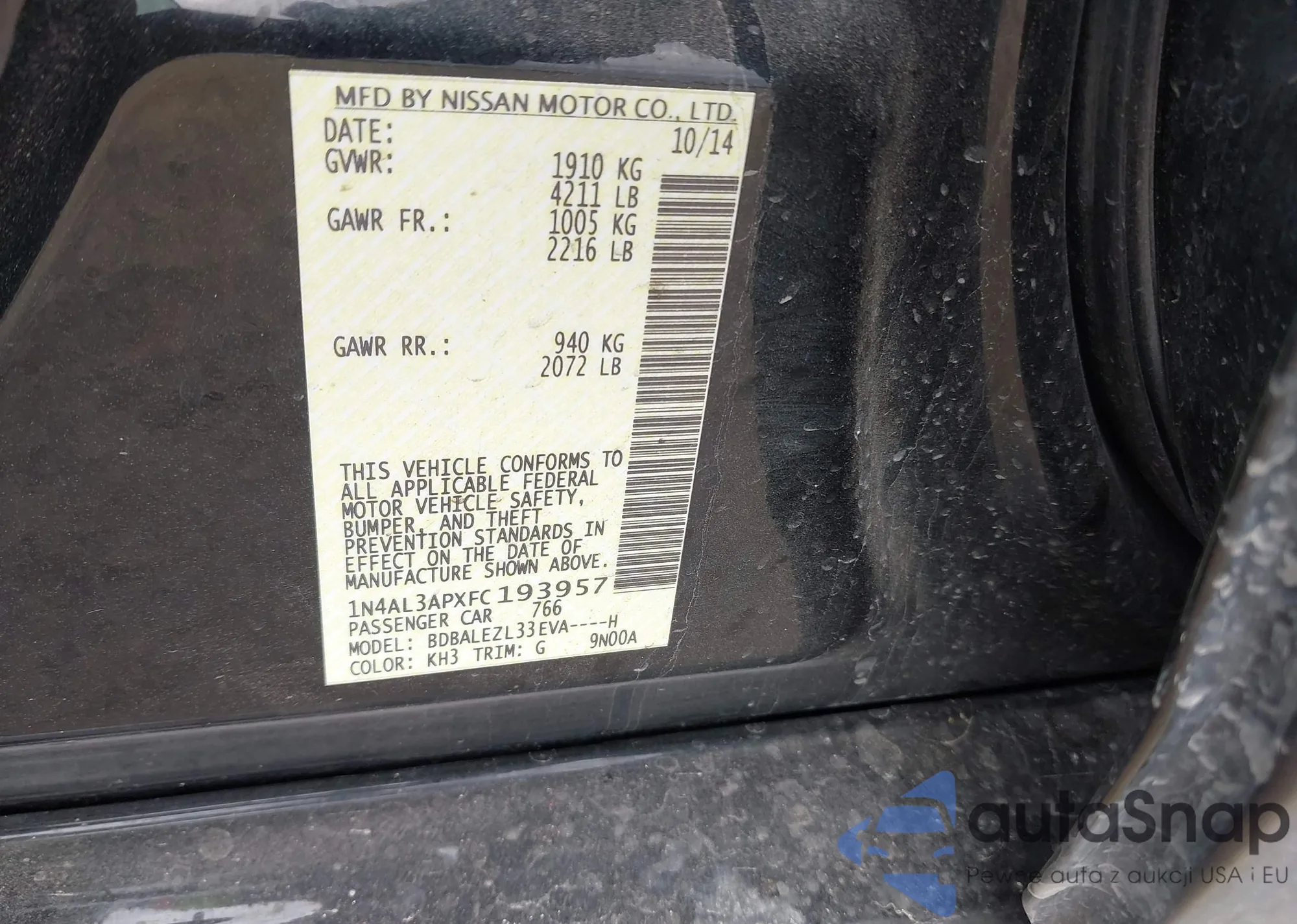 • VIN 1N4AL3AP8DN436764