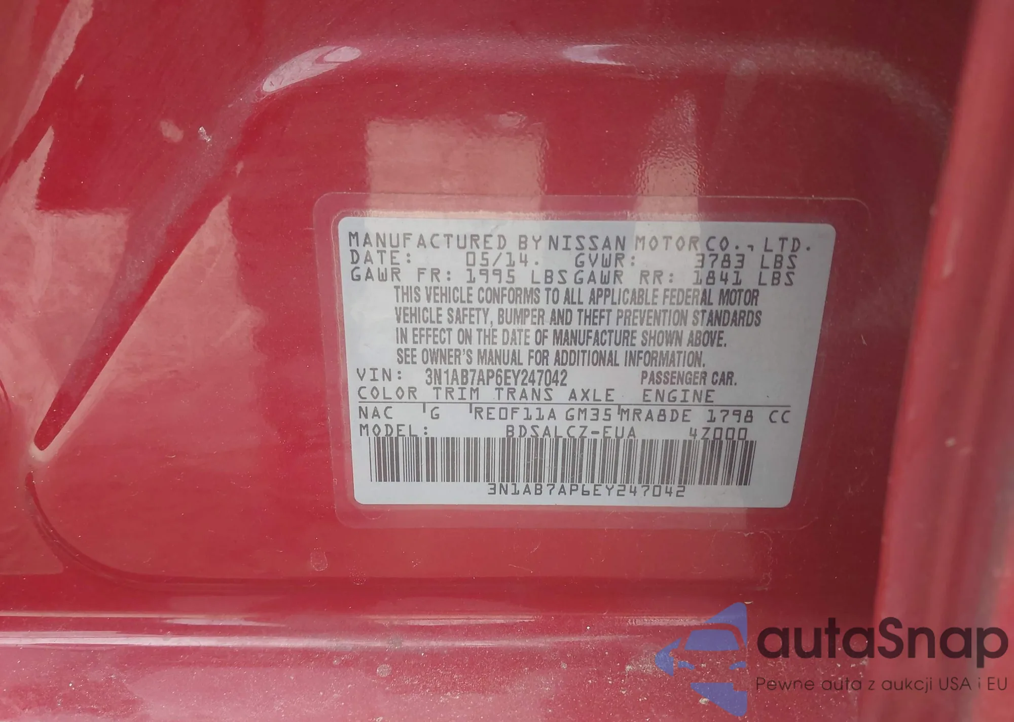 • VIN 3N1AB7AP6EY247042